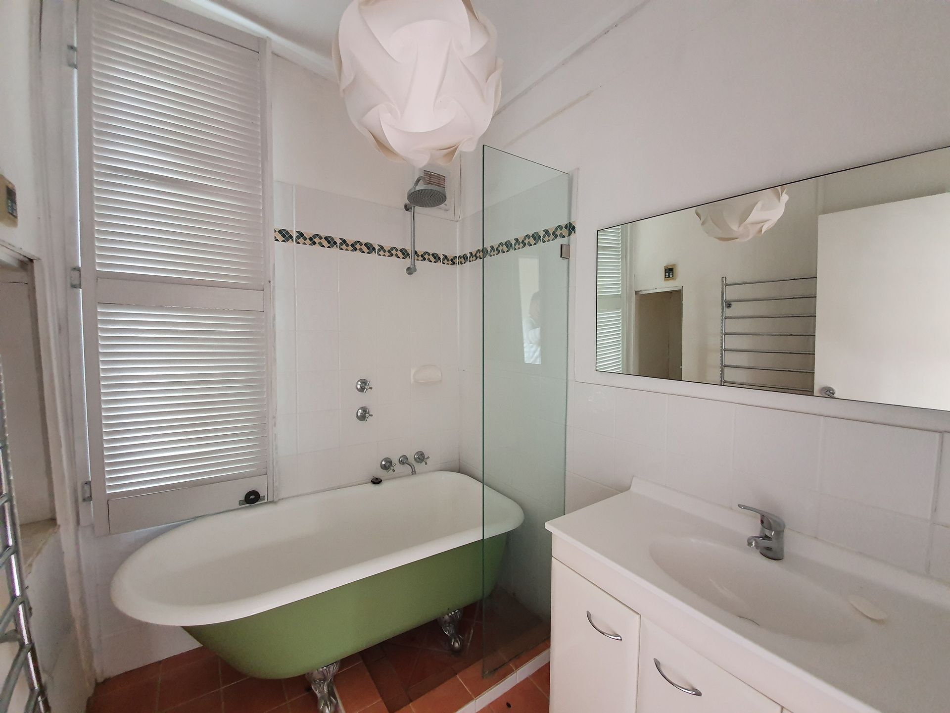 Bathroom with claw foot bath tub and heated towel rail