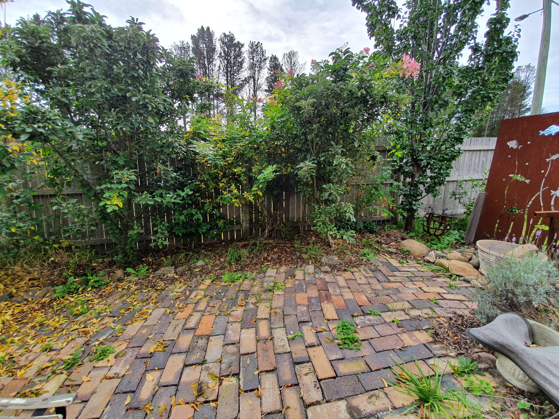Private courtyard off the main bedroom along with a private deck for your morning coffee Surrounded by established fruit trees and fully fence yard.