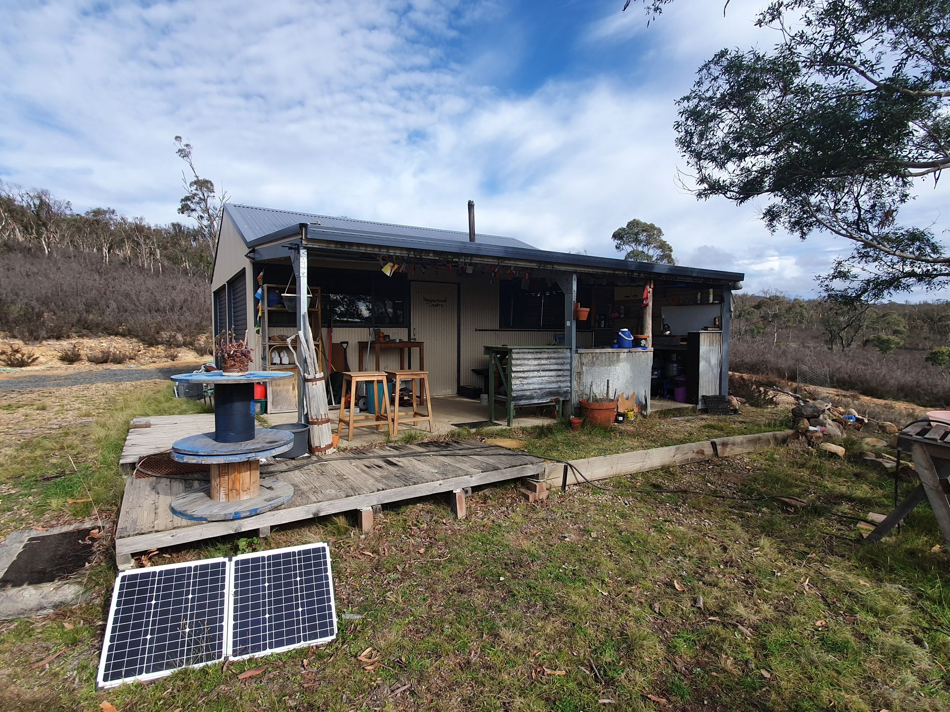 Fully fenced building block only 10kms from the historic town of Braidwood. The property is mostly native bushland with 2 dams that hold yabbies. There is a colour bond shed that has been fitted out as a comfortable weekender with a fireplace, bedrooms, outdoor kitchen area, simple battery solar power for lights, rain water tank and composting toilet. Other features of the property