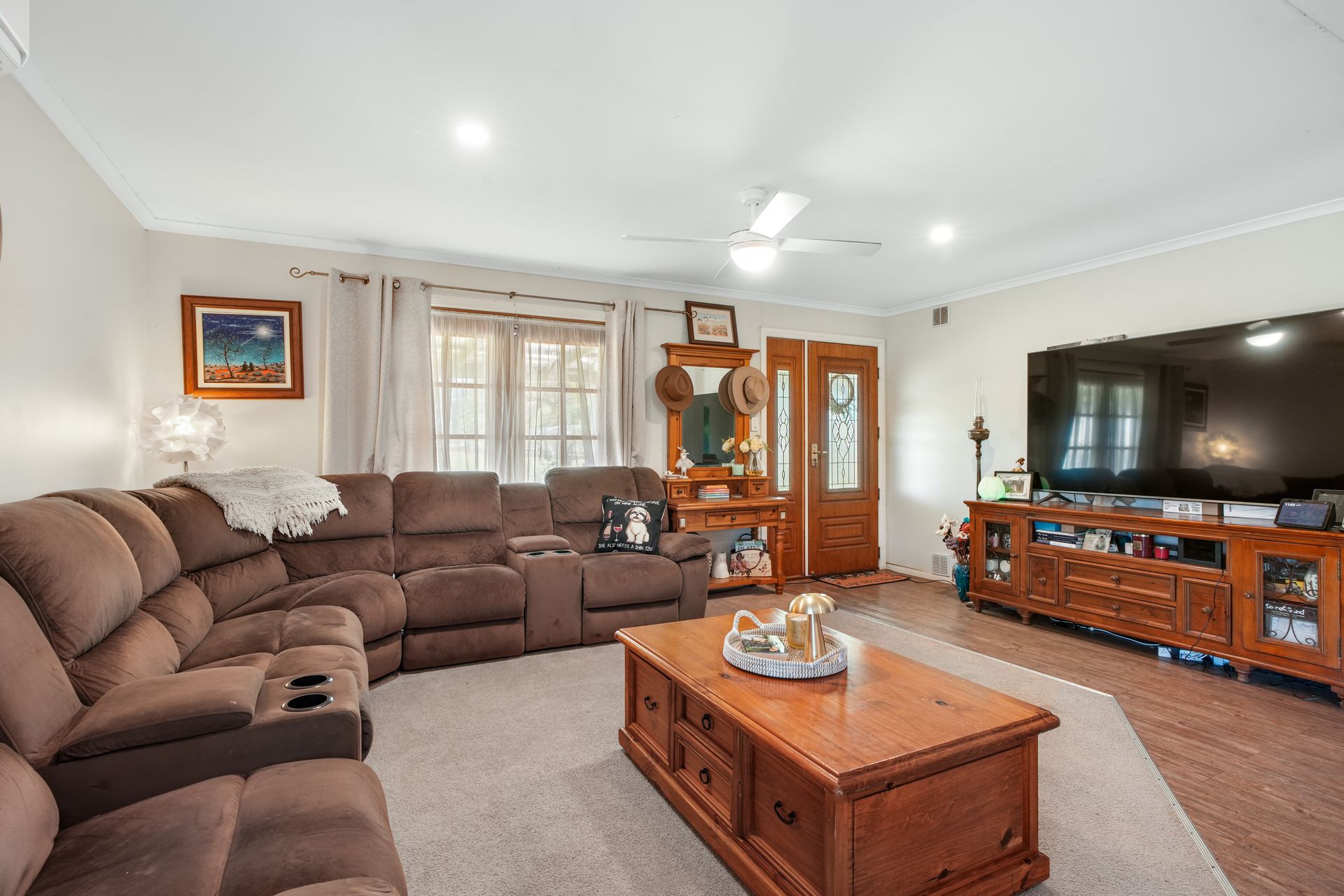 • Large wood heater, reverse cycle air conditioning services living areas.