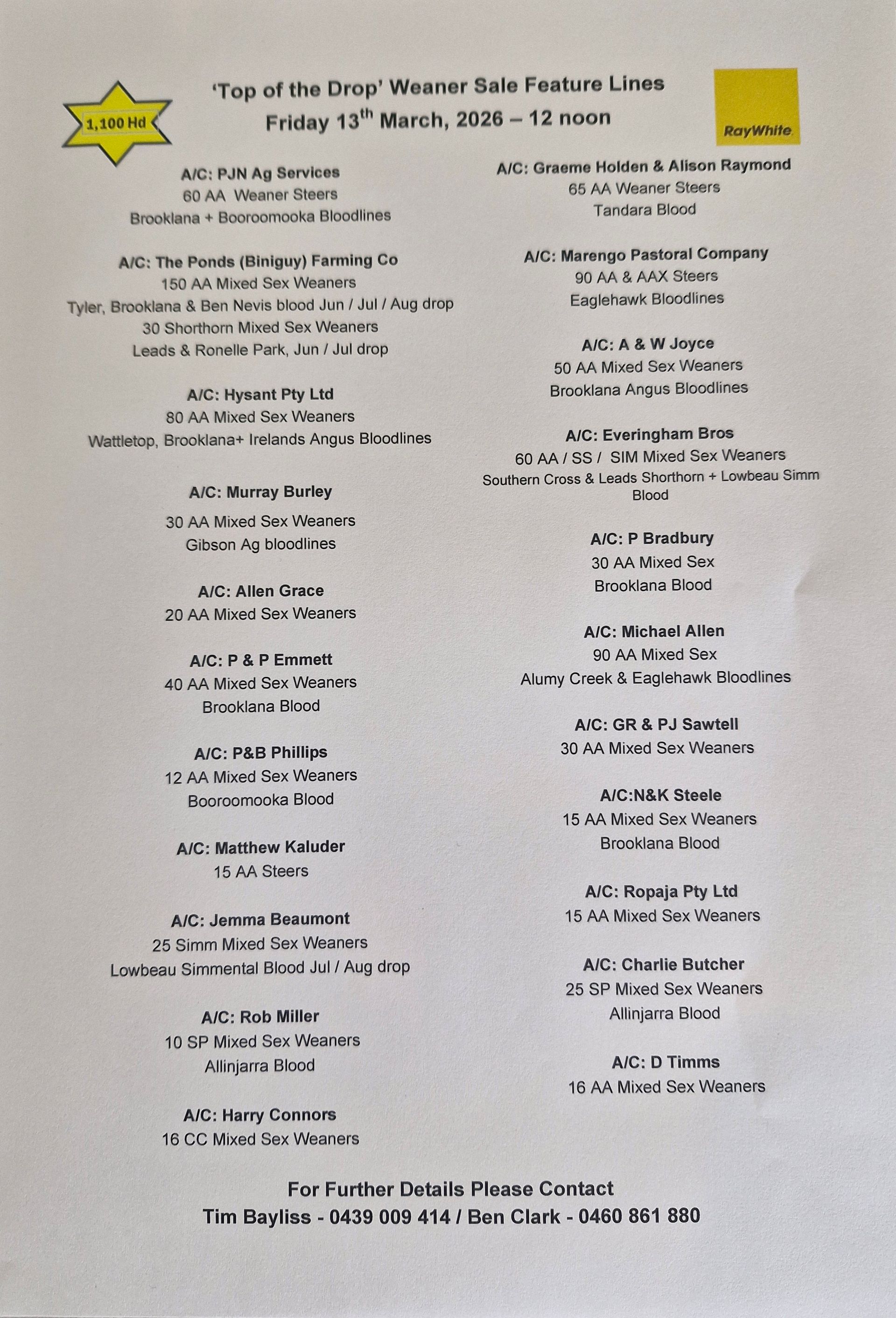'Top of the Drop' Feature Weaner Sale