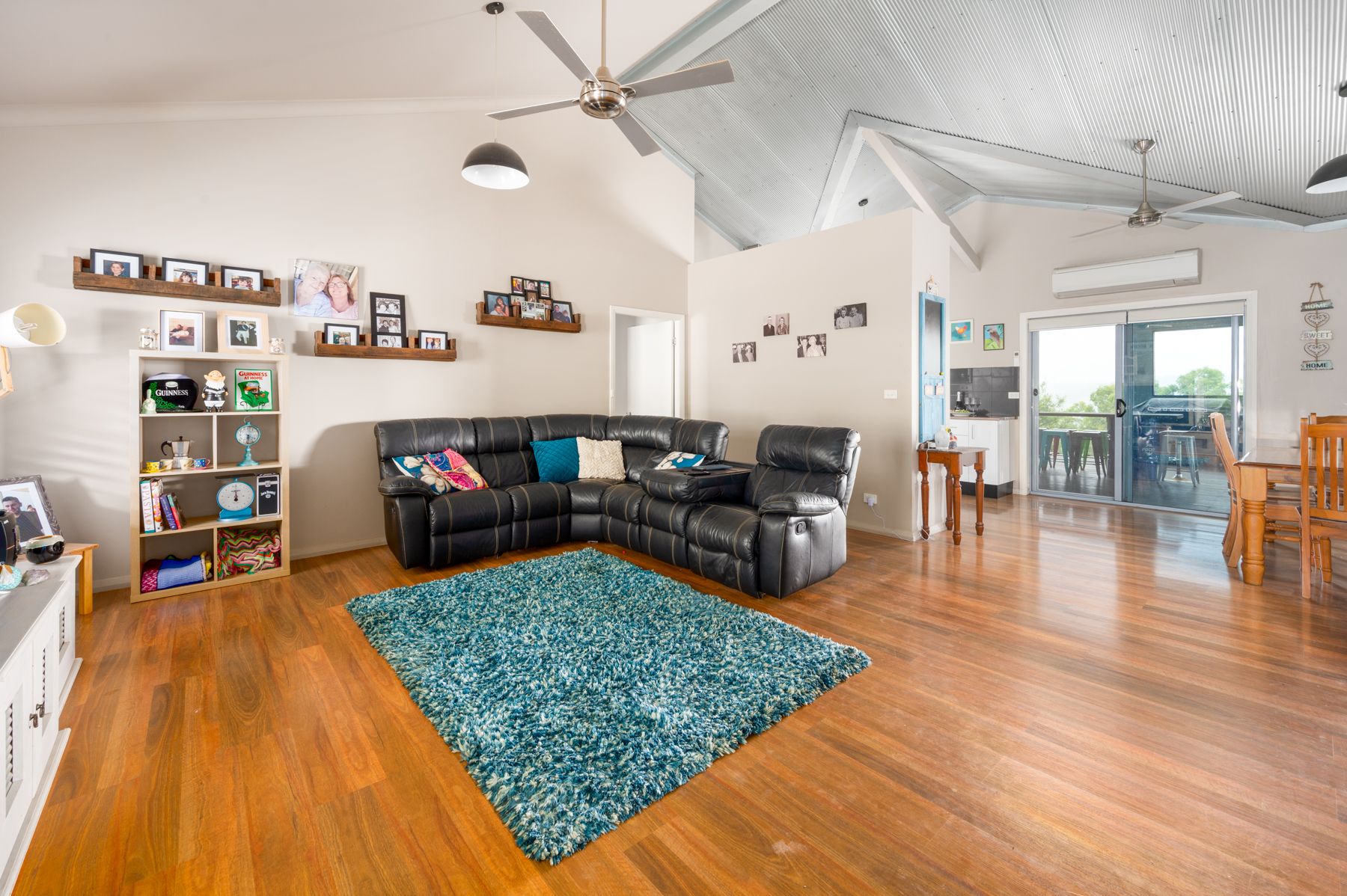 In the heart of the beautiful home, you will find a modern kitchen with a tiled splashback and stainless-steel appliances. The open plan living spaces boast cathedral style ceilings, featuring corrugated iron as the vocal point. On one wing of the home is the main bedroom with a walk-in robe and ensuite. While the down the other wing is two more bedrooms with built-in robes, a second family living space and the main bathroom which is a simple and sleek design featuring a claw foot bath as the centre piece.