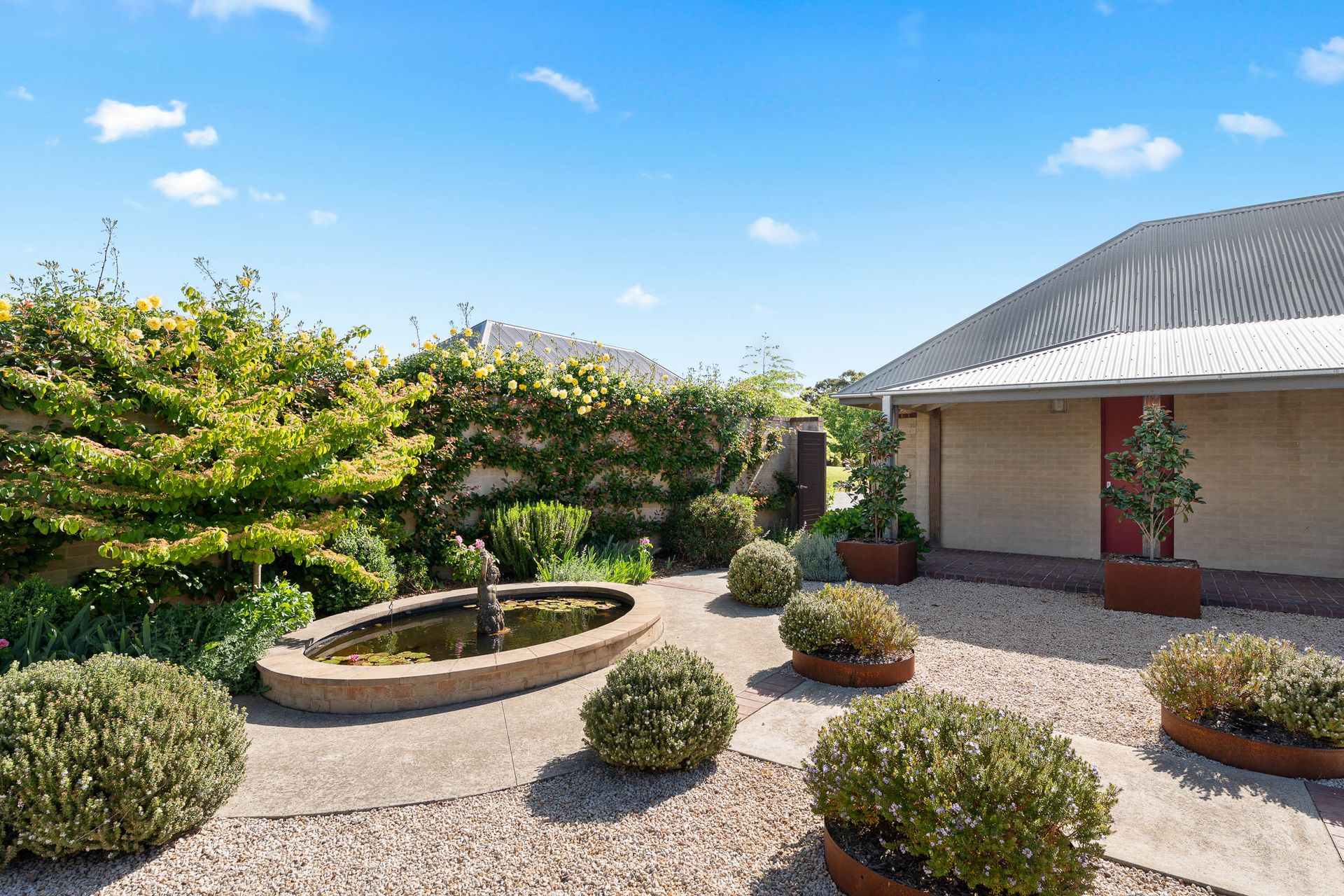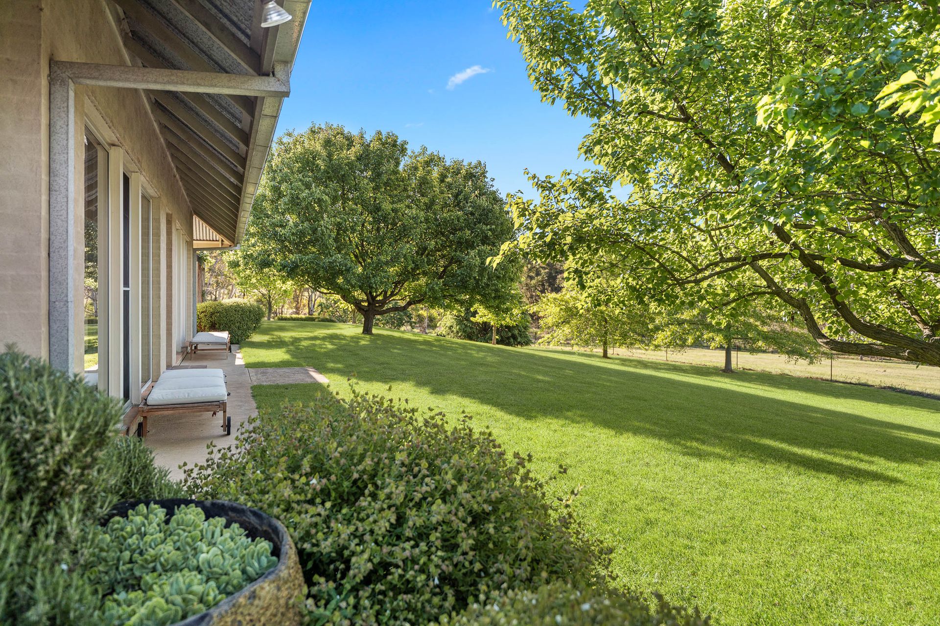 Designed by well-known garden designer James Hoskins, the surrounding park like gardens are a beautiful extension of the home - informal, low maintenance and perfectly complementing the architecture. A variety of trees and ornamental plantings bring the garden to life through the seasons, with vibrant spring blossoms and spectacular autumn colour.