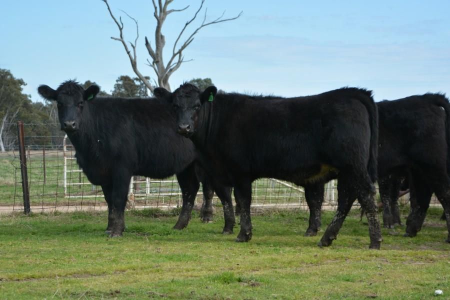 Attractive line of well bred Angus X Heifers, PTIC in calf to a LBW Alloura Angus Bull with a +4.6 for IMF