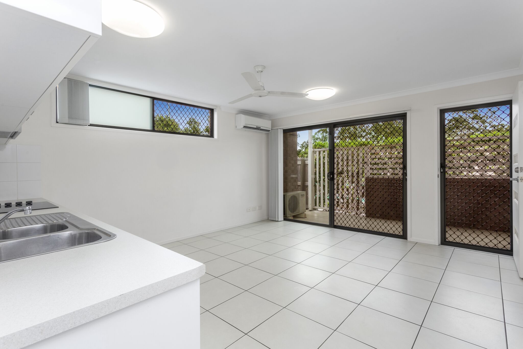 - Living area is fully tiled with air conditioning and a sliding door leads out to the private entertainment area and even a grassed area for your pet