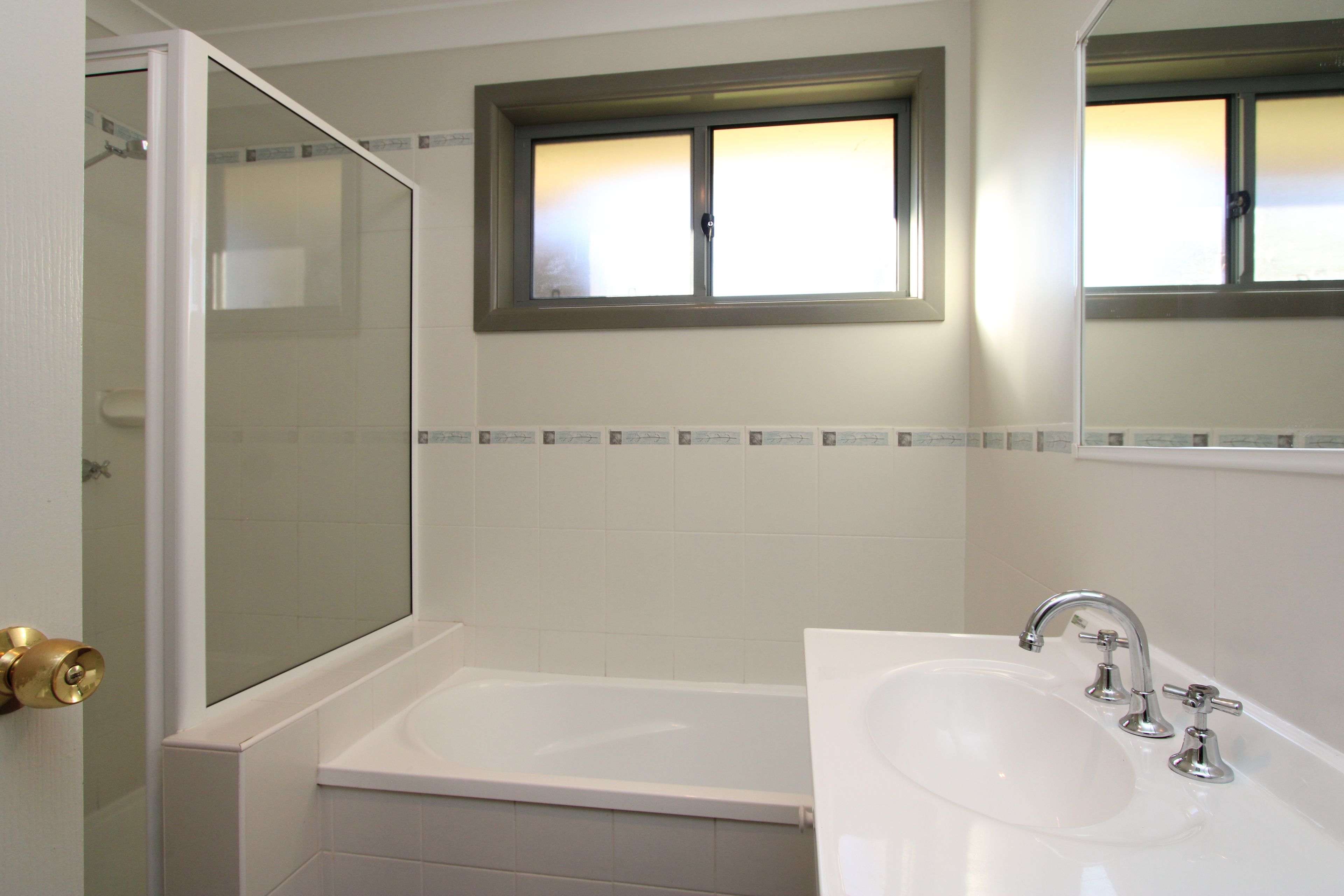 Large Modern Kitchen that opens onto the living area with reverse cycle air conditioner. Tidy bathroom with separate shower and bathtub.