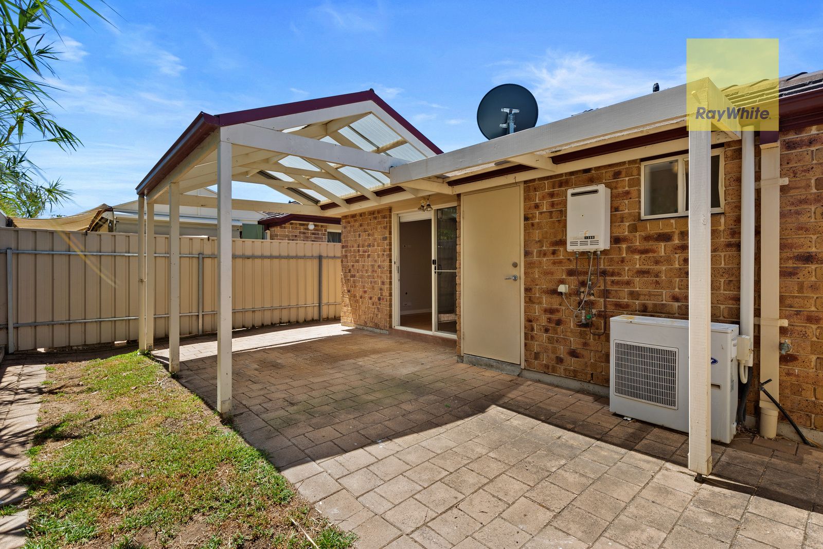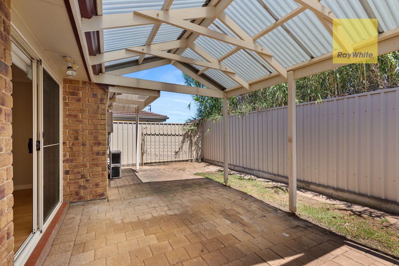 • A nice size backyard with a pergola