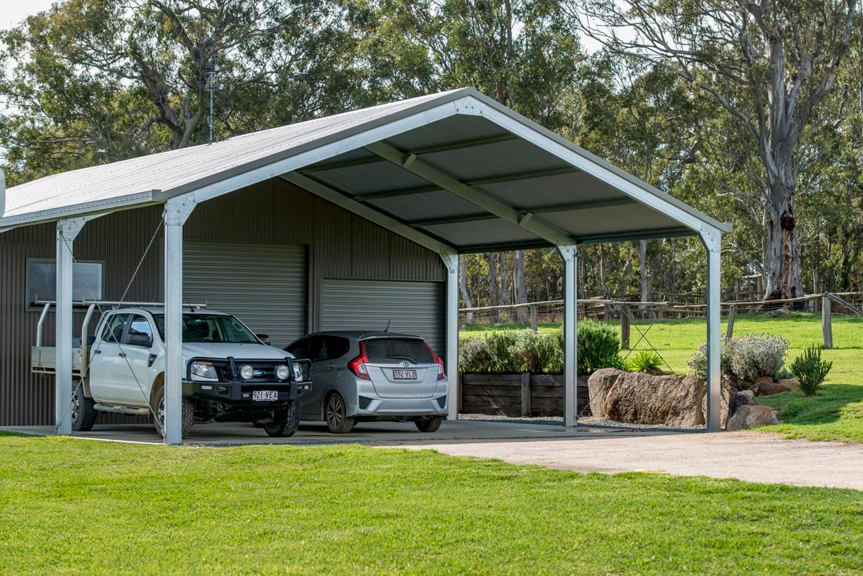Two large sheds with plenty of undercover parking. One includes a fully