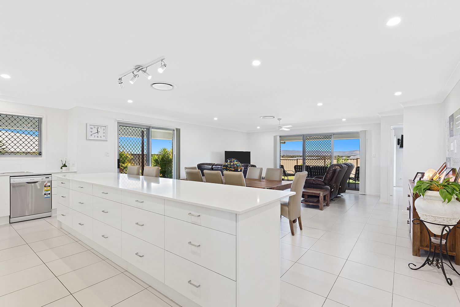 Large open plan living with views to the mountain. Spacious internal laundry with built in cupboards and linen press.