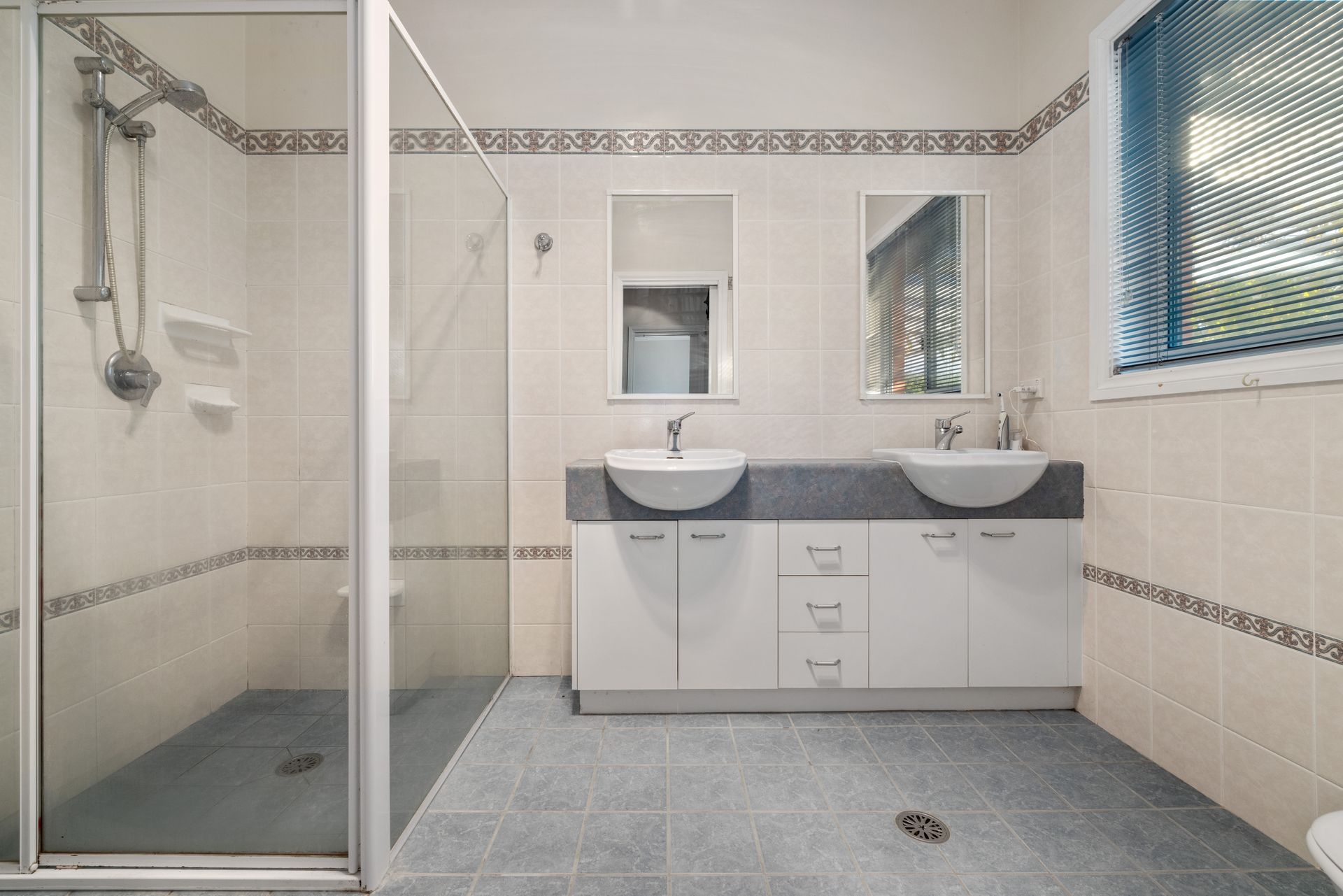 The home's main bathroom features a spa bath, while there is also a separate toilet including a basin.