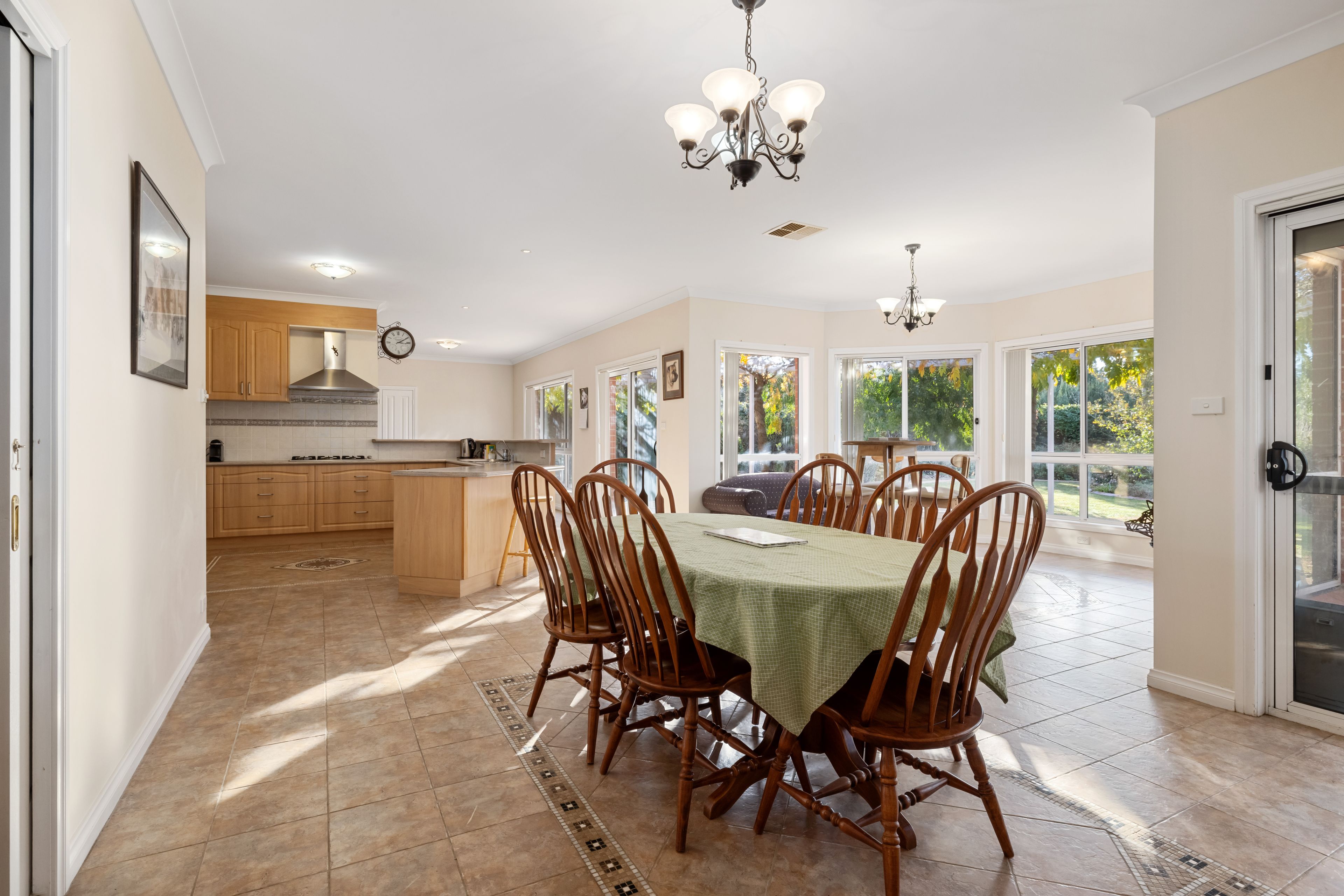 The north-facing open-plan kitchen, with a huge walk-in pantry, overlooks the dining and living areas with ample natural light flowing through from the large bay window and glass sliding doors.