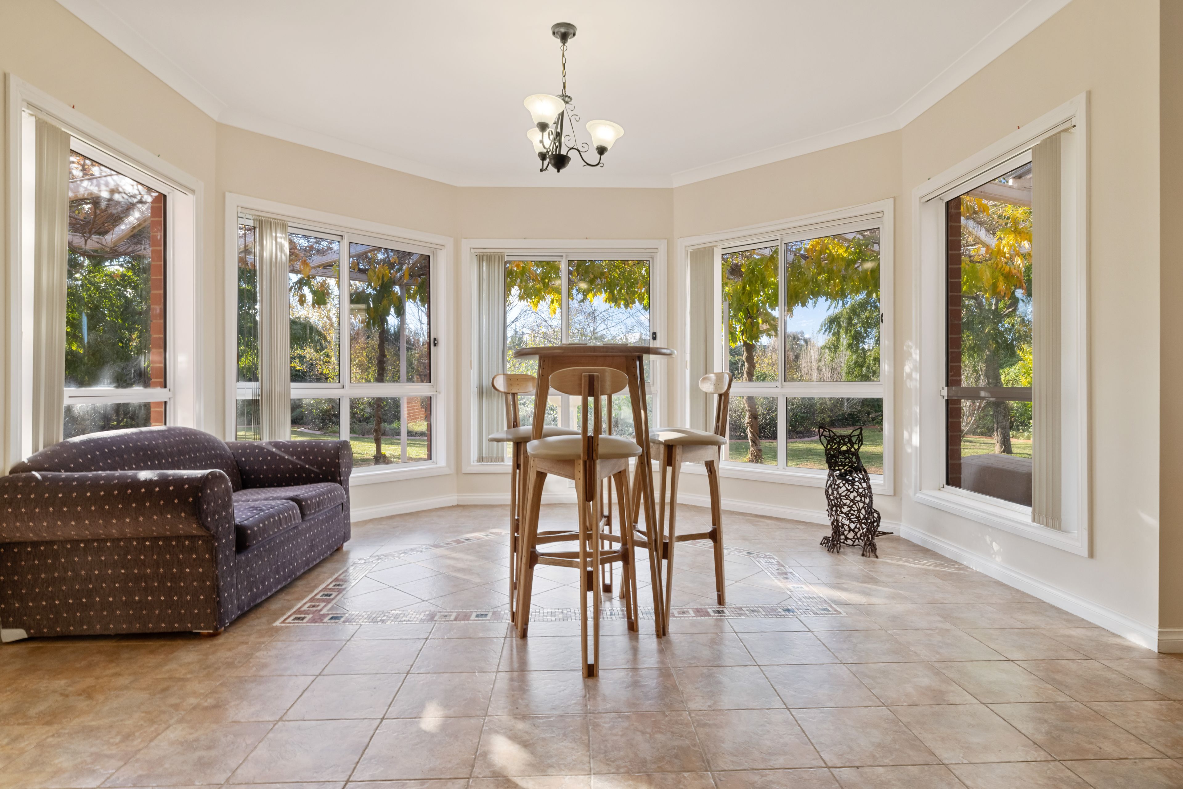 Outside, the stunning well-established gardens are divided into zones to enjoy with family and friends, as well as a large orchard with almond, olive, peach, apple, apricot, plum and pear trees.