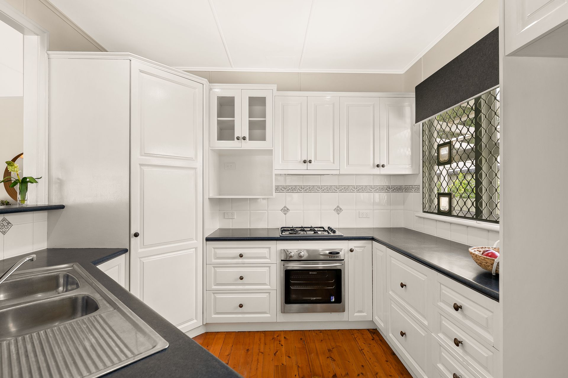 Polished timber floorboards and a neutral colour scheme combine harmoniously throughout the flowing floor plan to create a welcoming environment. The kitchen is complete with stainless steel appliances and easily services the dining and living areas for hassle free entertaining.