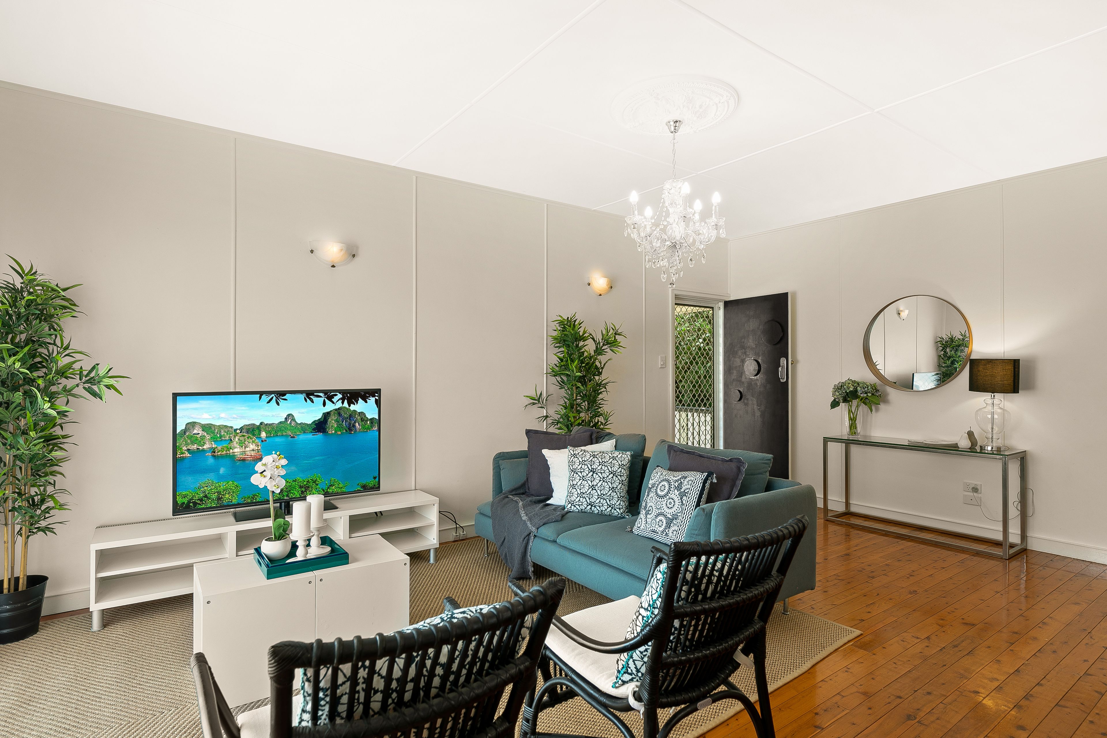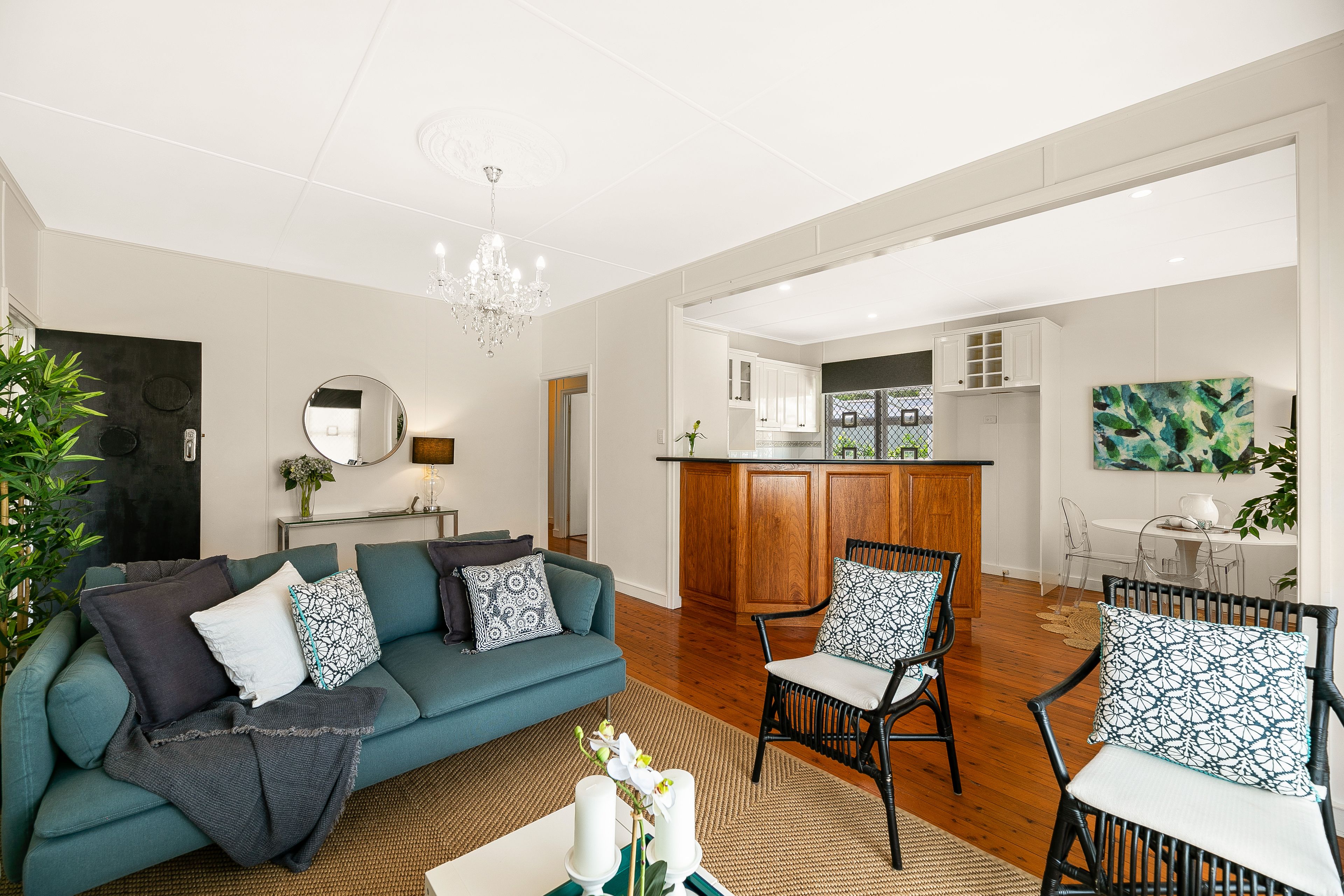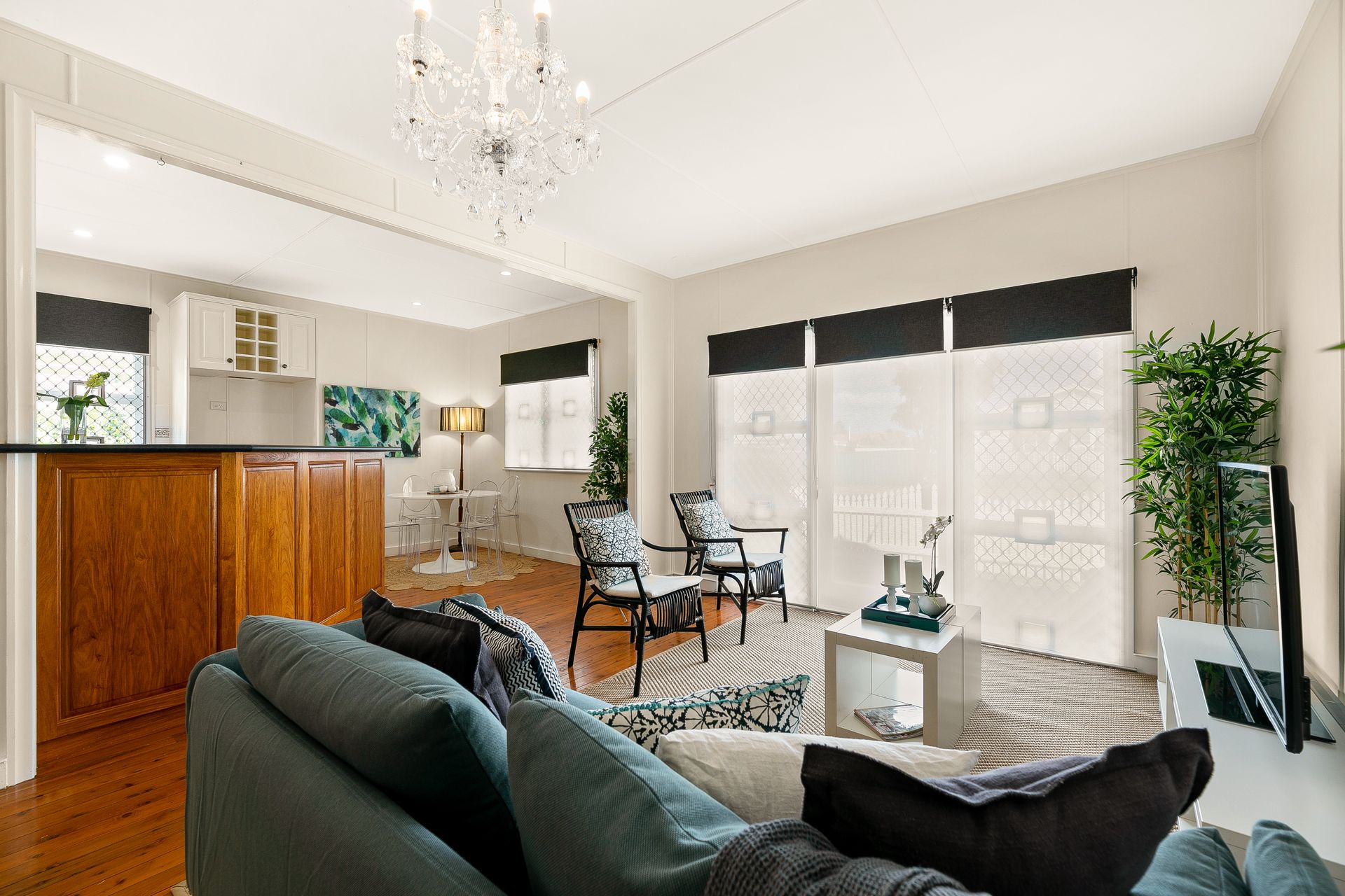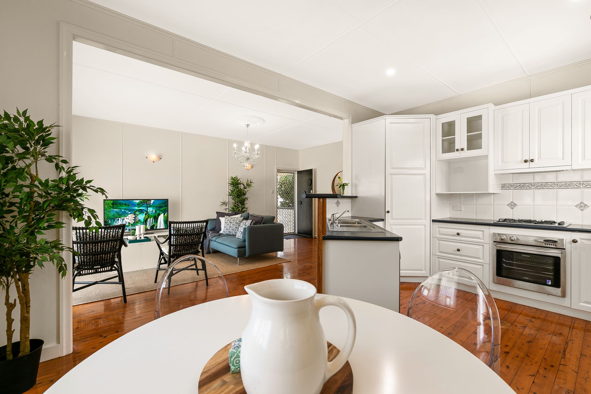 • Light and airy open plan living with polished floorboards