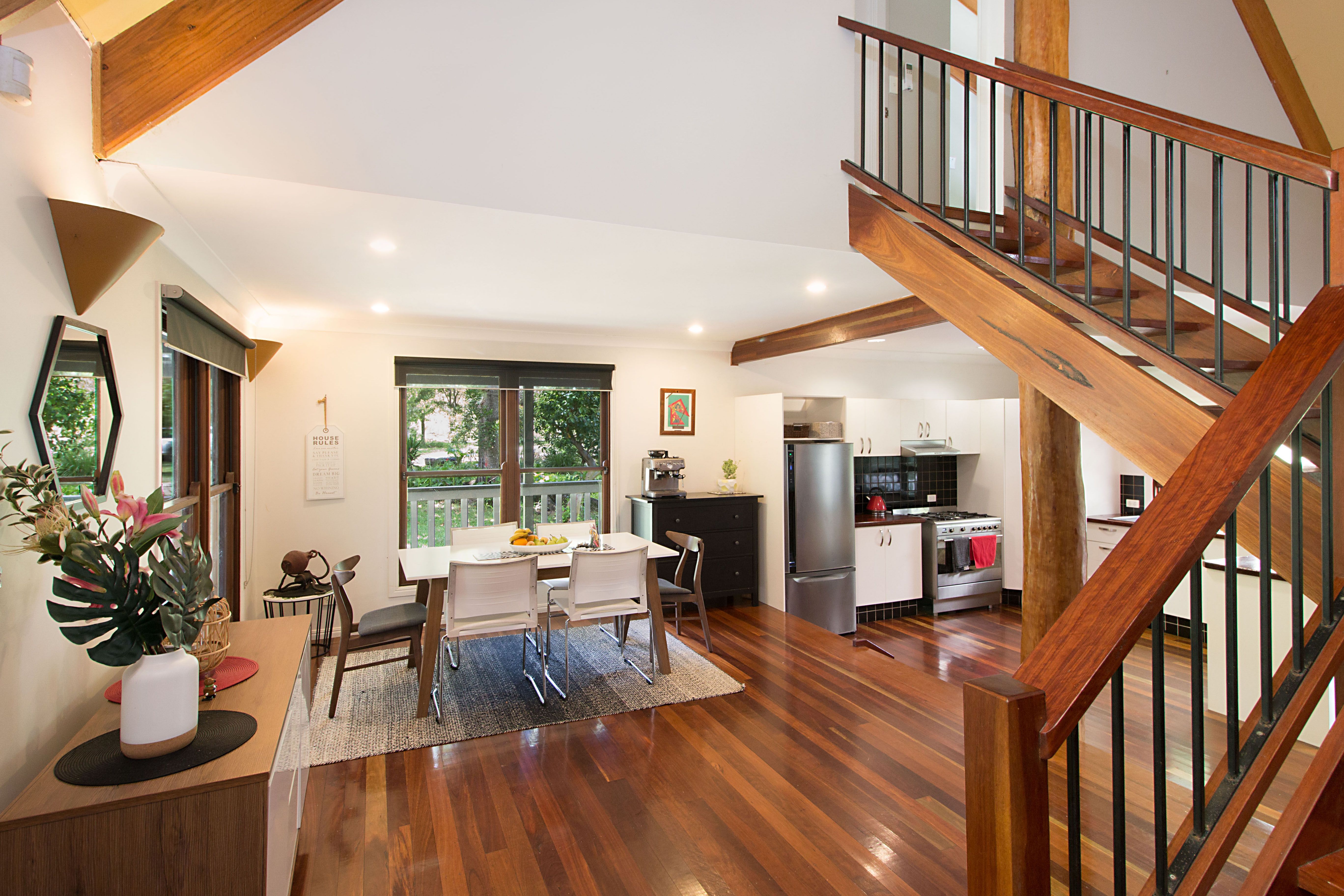 • Cathedral ceilings, Hardwood Timber floors & timber sash windows