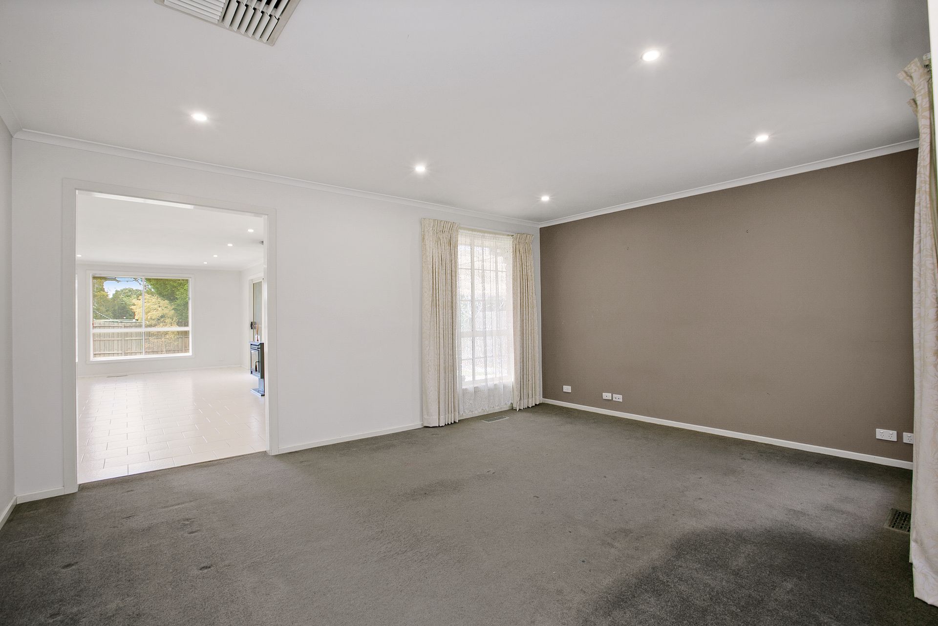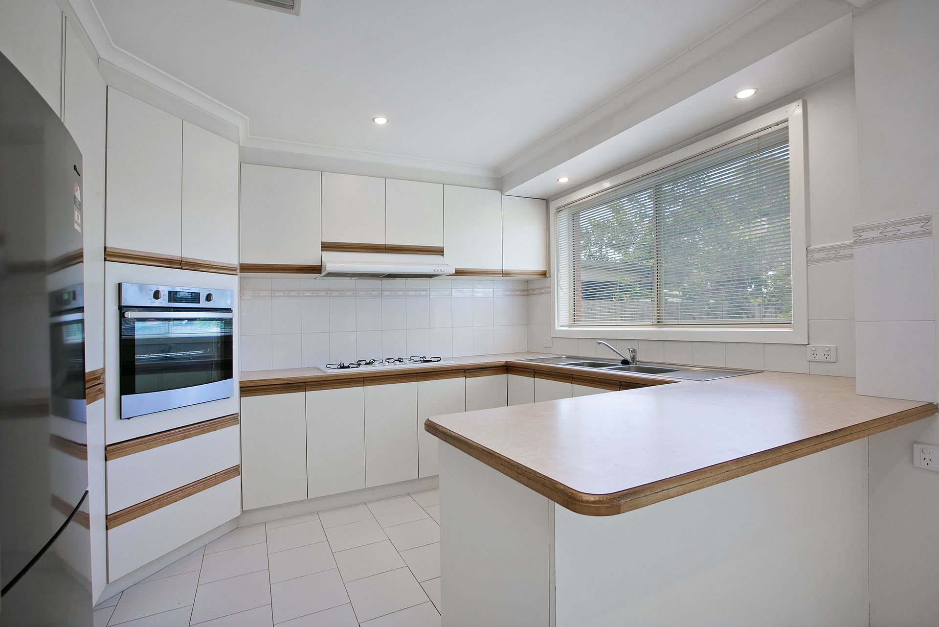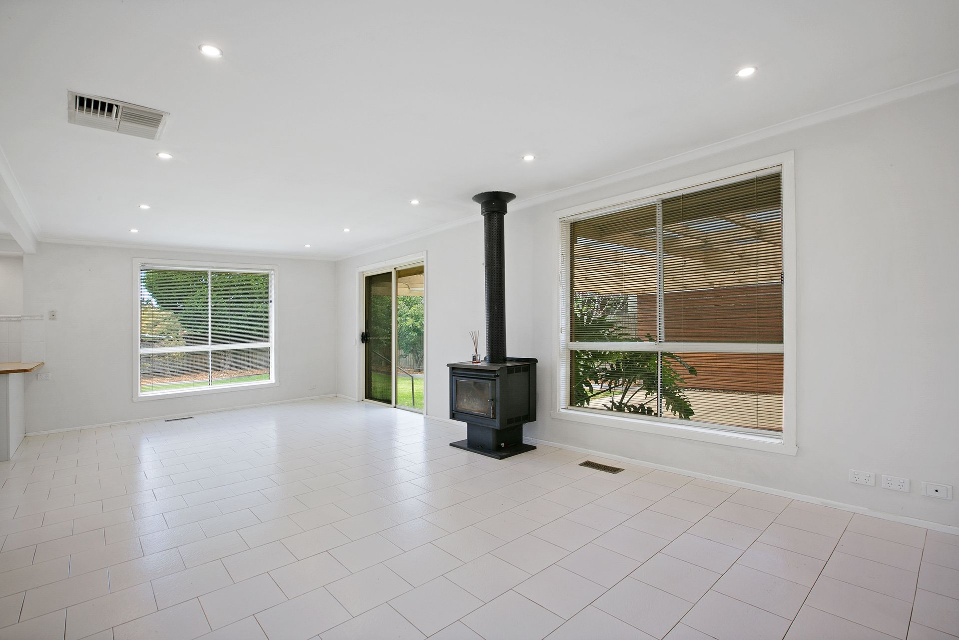 An original yet modern kitchen with stainless steel wall oven & dishwasher all overlooking the spacious open plan meals & living with a private yet large lounge room.