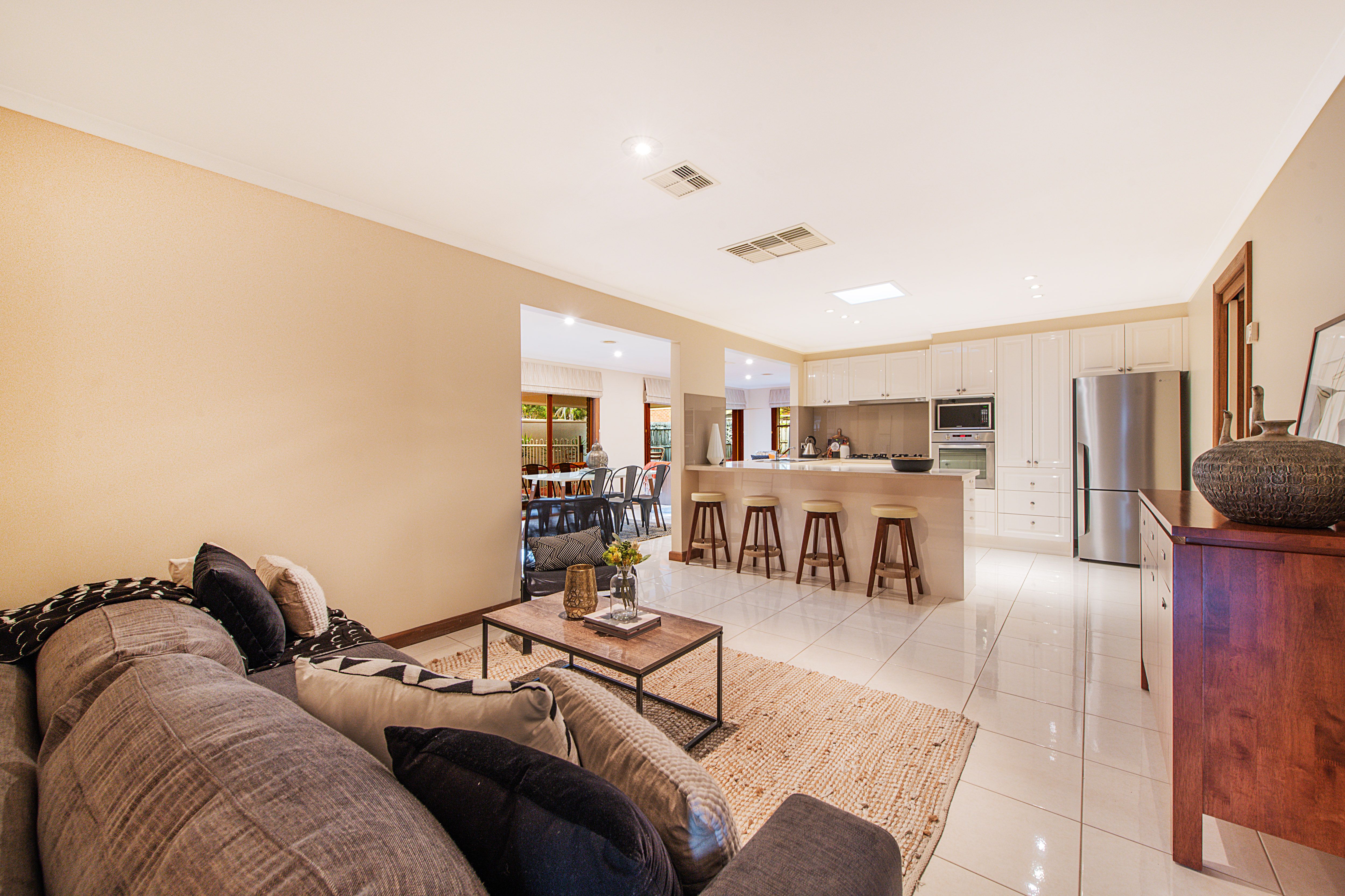Behind its lovely brick façade you find a perfectly presented home featuring plenty of living options including a formal lounge/dining room, an extended family or rumpus room and a meals area adjoining the gorgeous renovated kitchen with stone benches and stainless appliances.