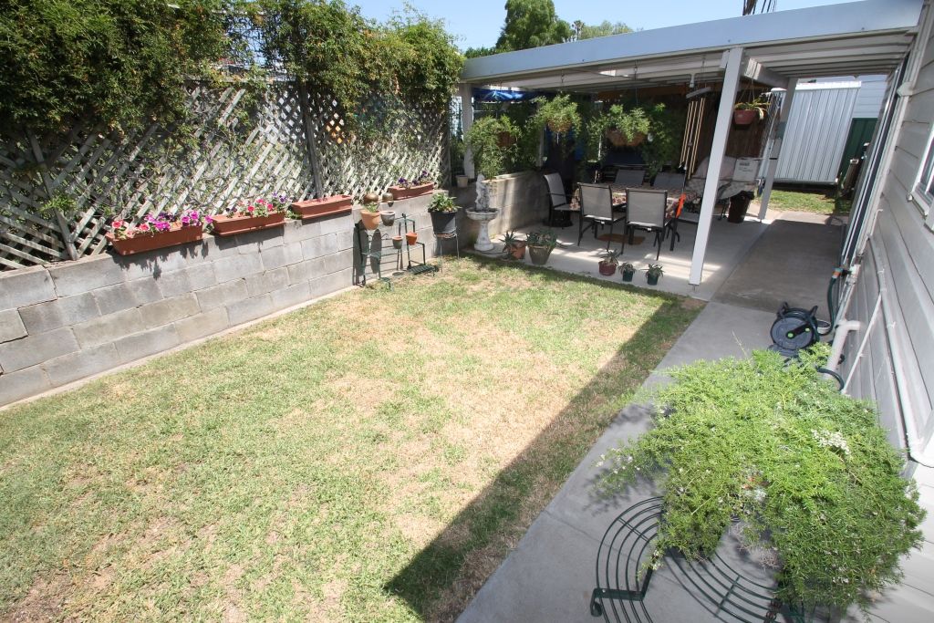 Large fully fenced backyard with garden shed & side access