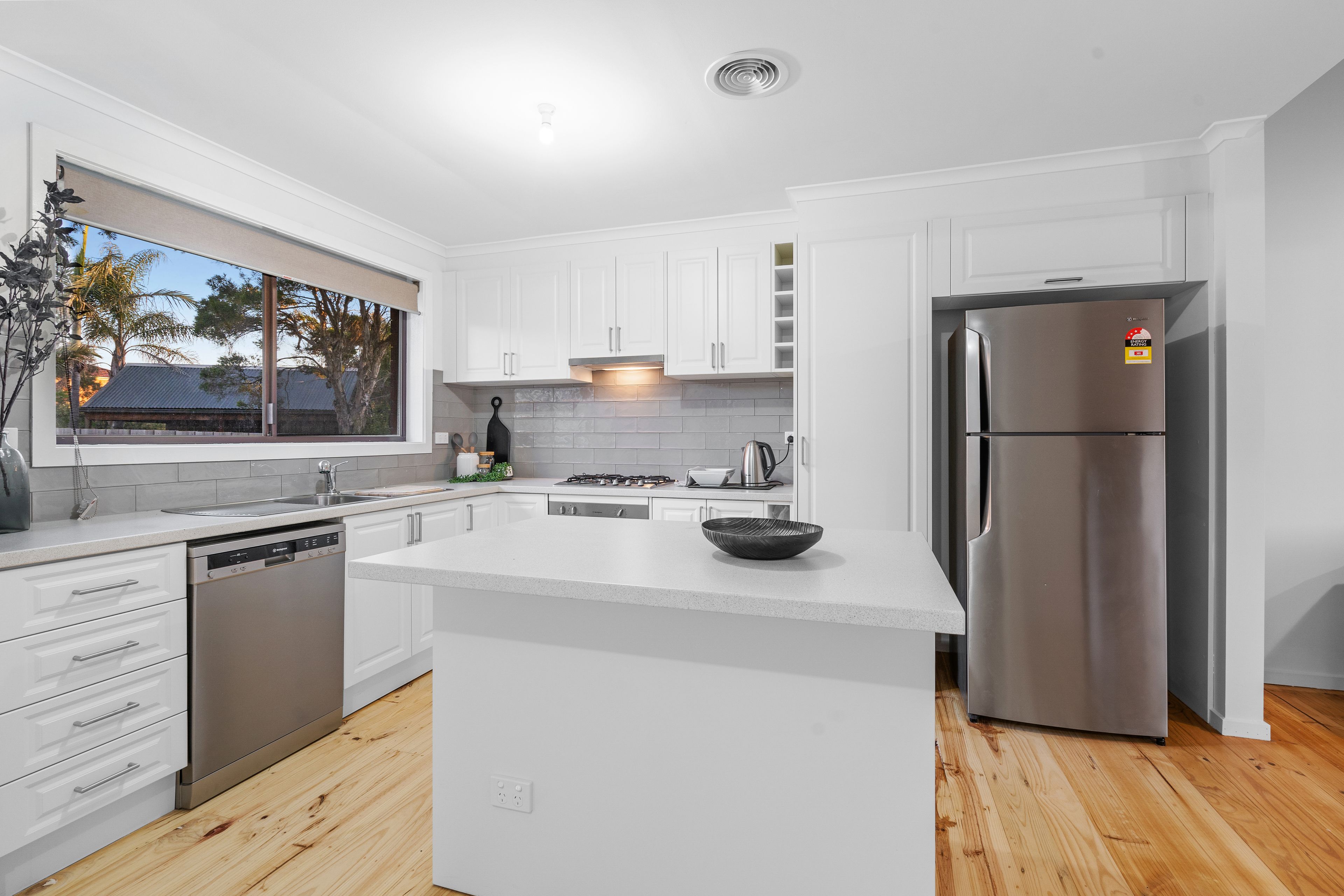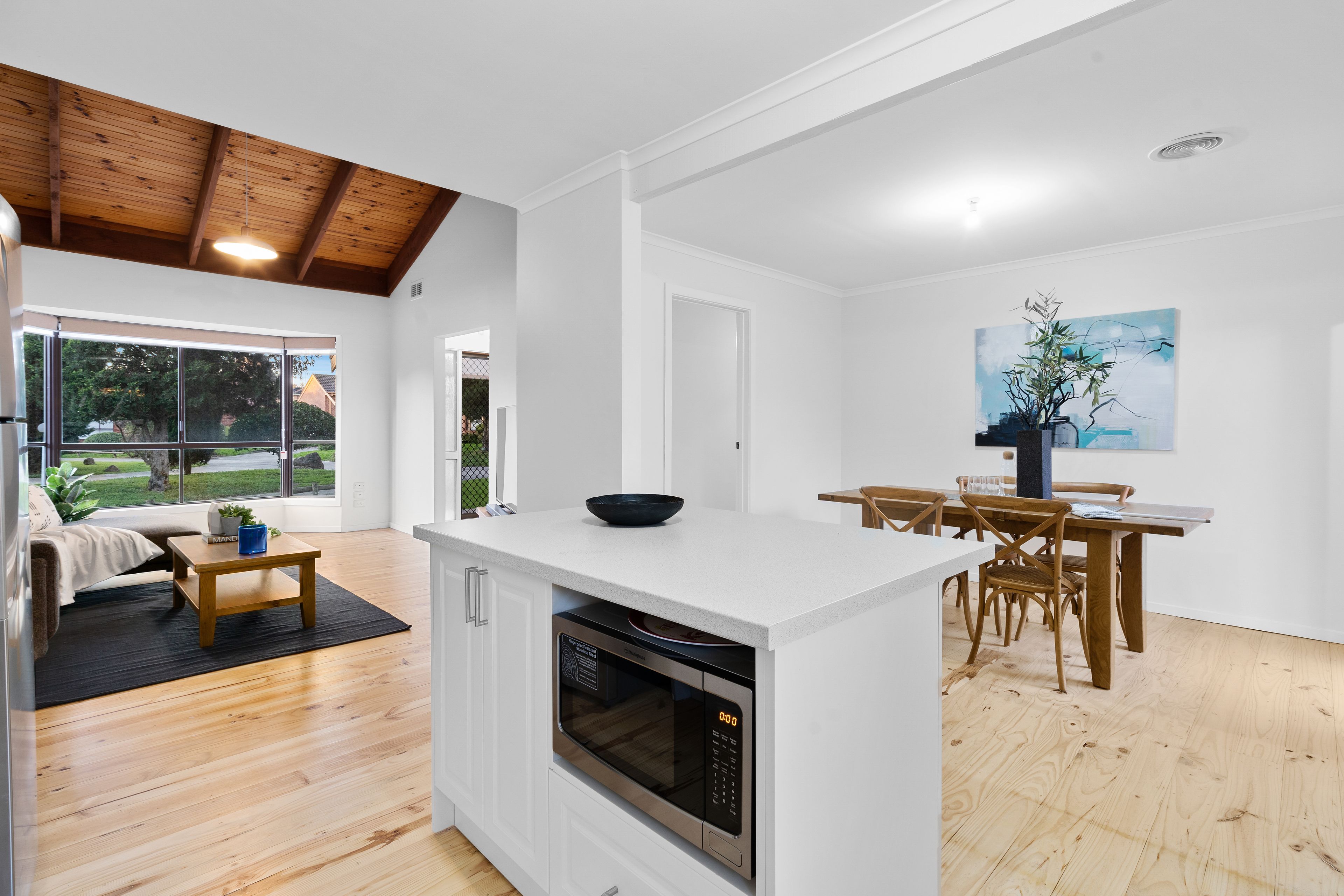 Quality features include 3 generous well-appointed bedrooms with BIRs (main with ensuite and walk in robe), fully renovated contemporary open plan kitchen with quality stainless steel appliances and island bench, freshly painted, high cathedral ceiling in the living area, hardwood floorboards throughout, new ducted heating and cooling, new blinds, oversized single brick garage and additional car parking. All this in an unbeatable locale. Inspection is a must!