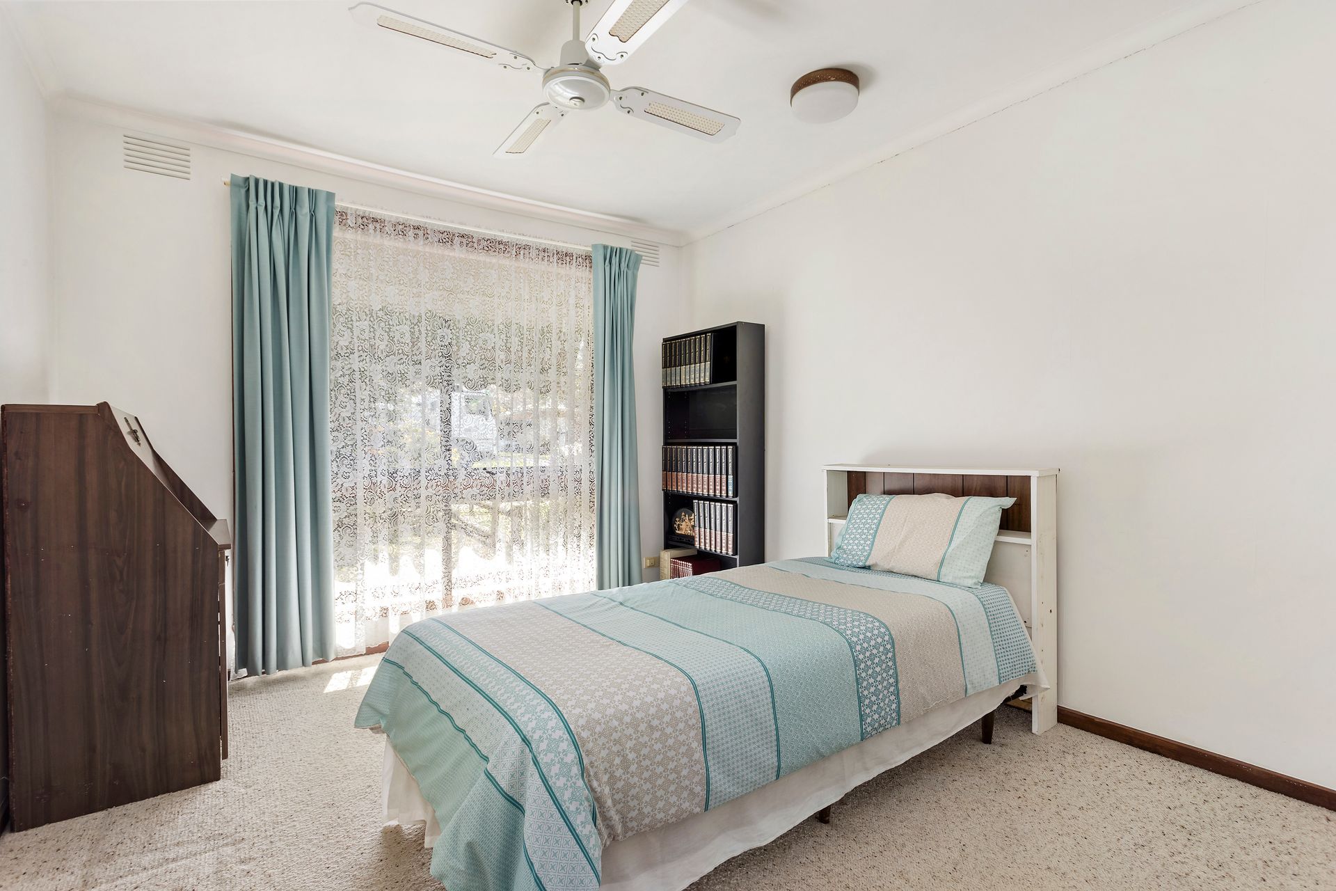* Main bedroom with walk in robe & ceiling fan