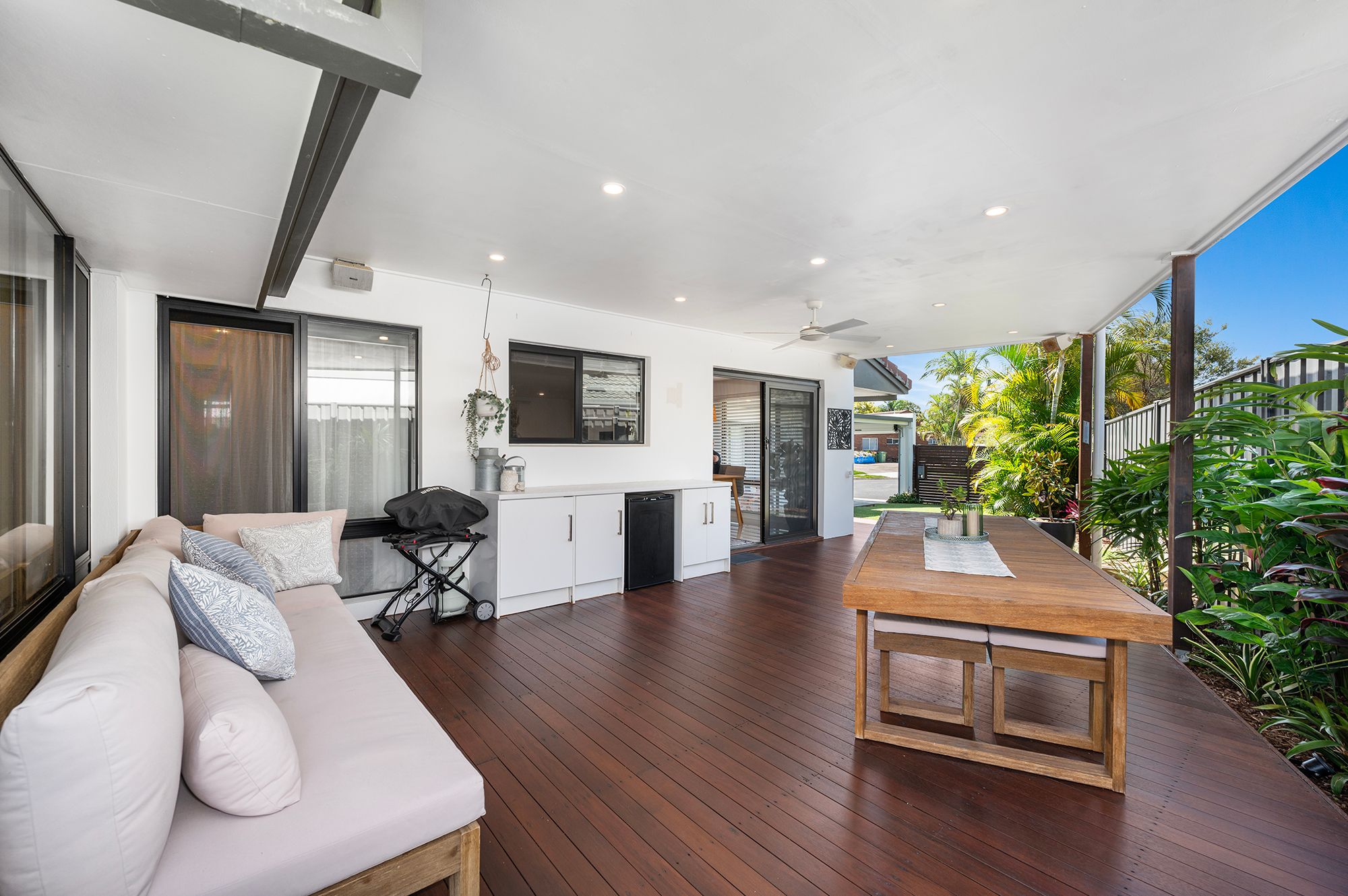 Discover the allure of this exquisite four-bedroom duplex nestled at the quiet cul de sac's end in the heart of Burleigh Waters. A flawless retreat awaits, adorned with timeless renovations showcasing a palette of pristine white and soothing neutral tones.