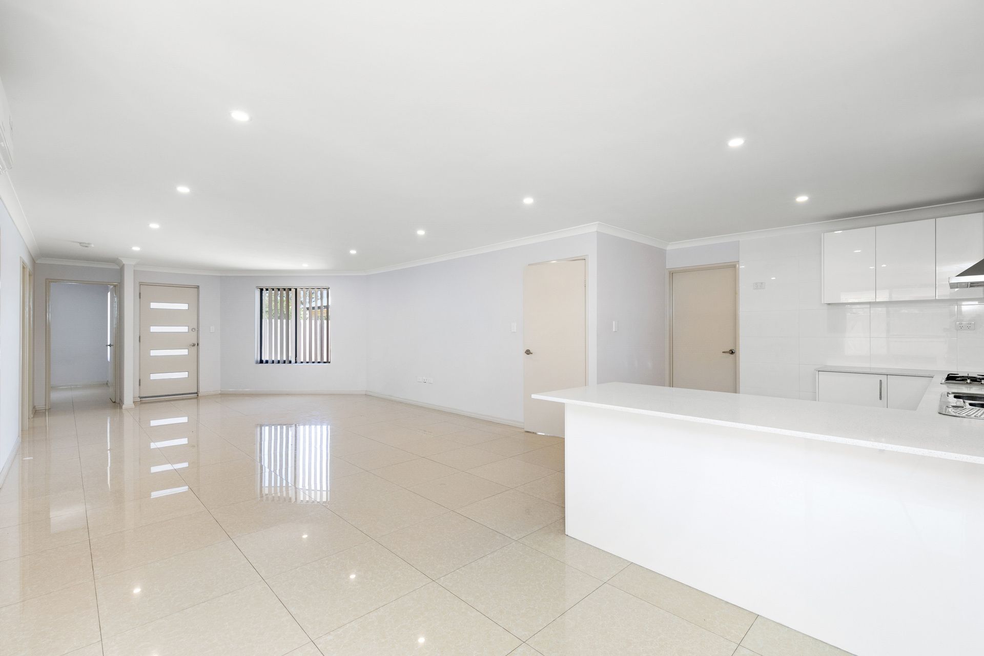 • Gleaming large profile porcelain tiles (no carpet)
