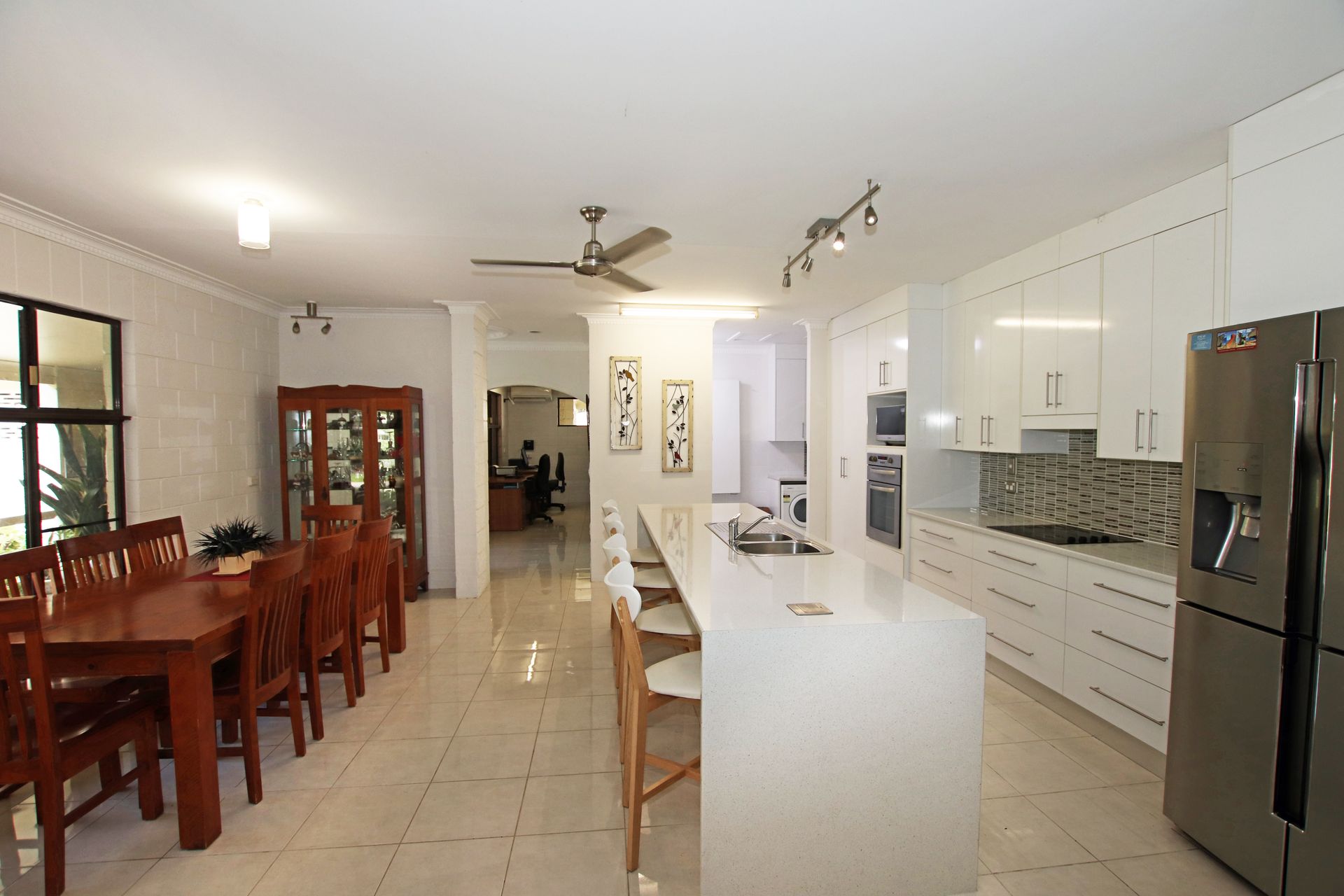 The large family home constructed of core filled concrete block has a total roof area of approximately 500 square metres and features 4 bedrooms, 2 bathrooms and an office. The master bedroom has a modern ensuite and walk in robe. The other 3 bedrooms all have built in robes, one of the bedrooms would make an ideal media room. The modern kitchen is centrally located to the open plan living and dining and lounge room. The family bathroom features a bath and separate shower. Wide verandahs cater for the central Queensland climate. The home is very well insulated, cool in summer and holding the warmth in winter. Rain water storage from 3 rainwater tanks. Solar system on the roof.