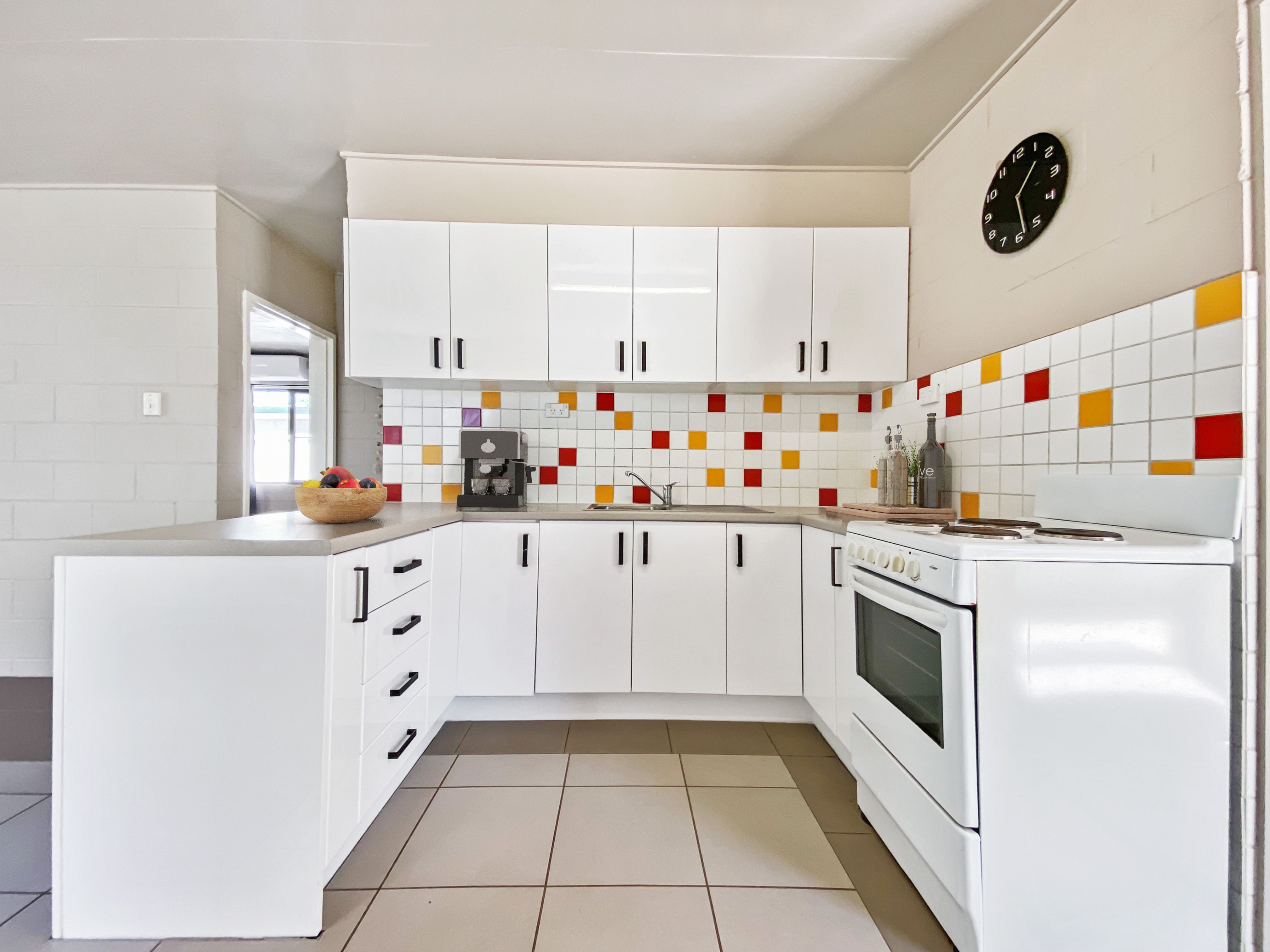 - Updated kitchen with ample storage, electric cooking and room for a decent sized fridge