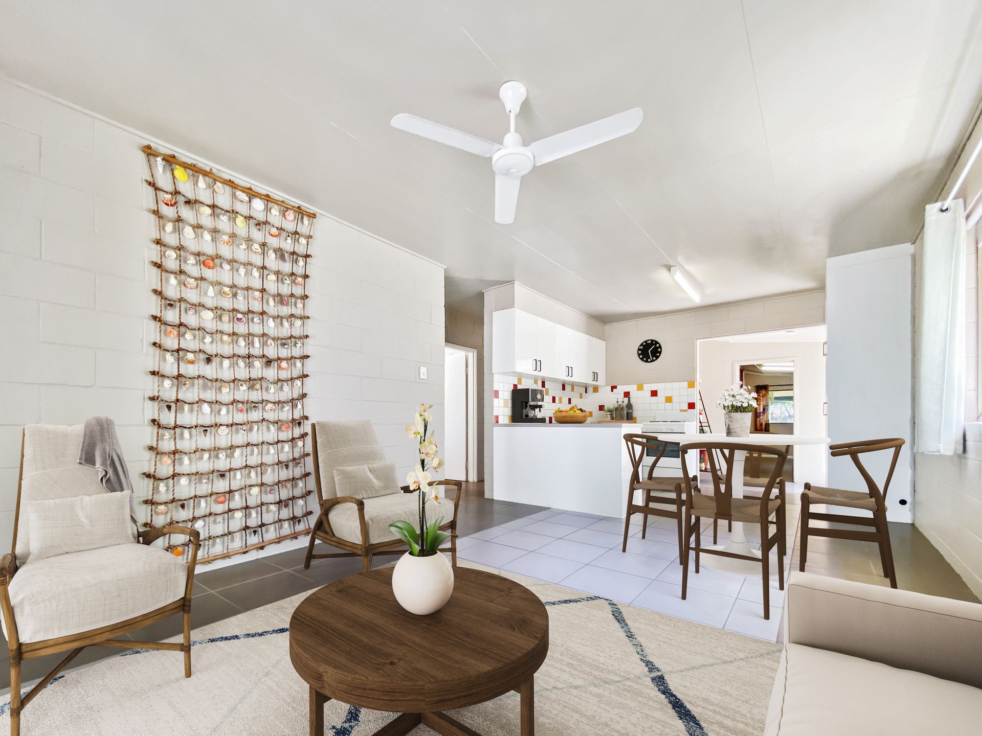 - Open plan living, dining, and kitchen