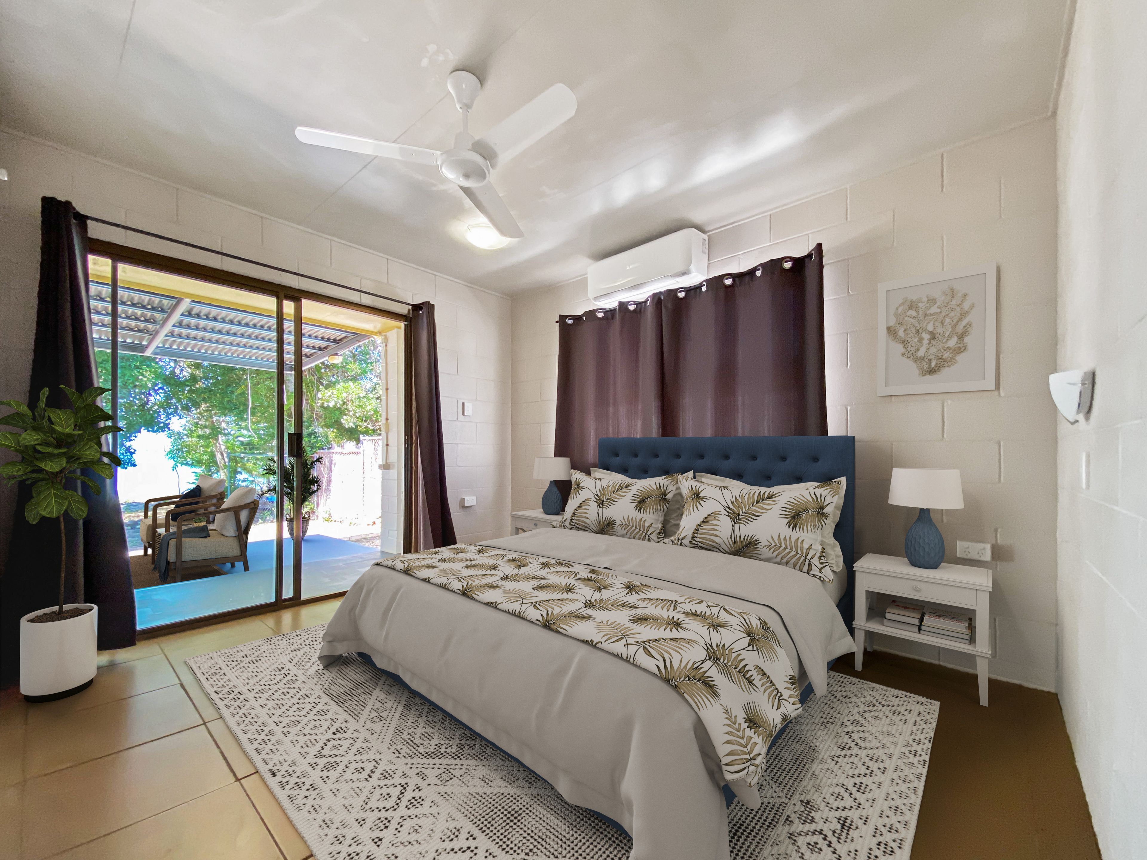 - Master bedroom with built-in wardrobe, air-conditioning and opens out onto the patio and has view out to the water
