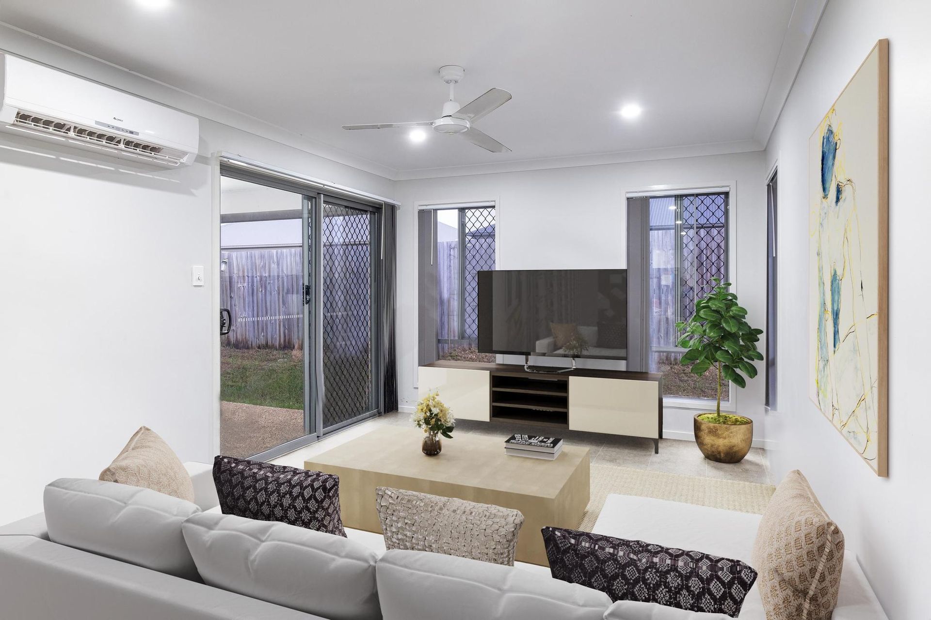 - Open plan living area which has sliding doors leading out to the alfresco.