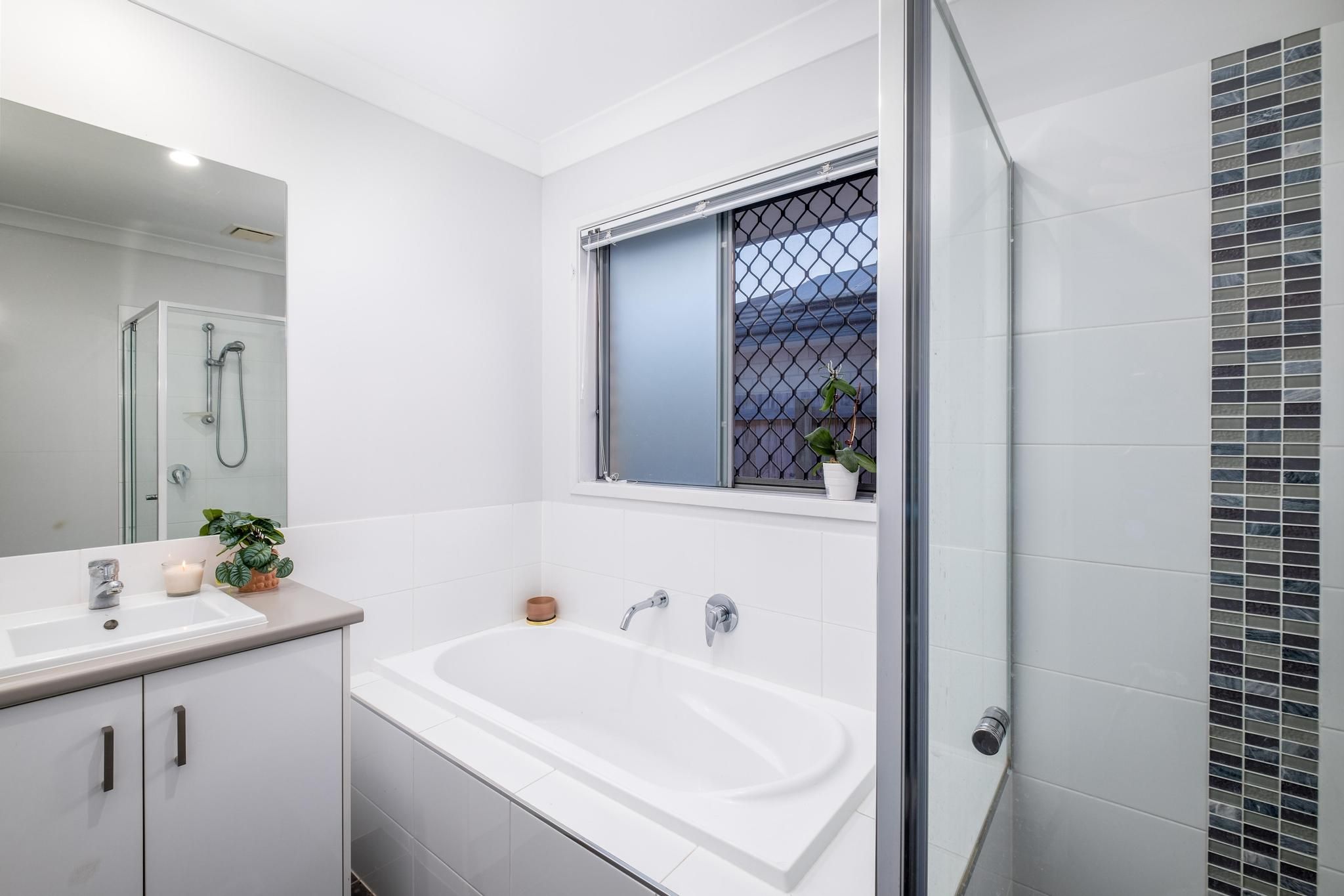 - Spacious main bathroom with separate large shower recess, bath and vanity