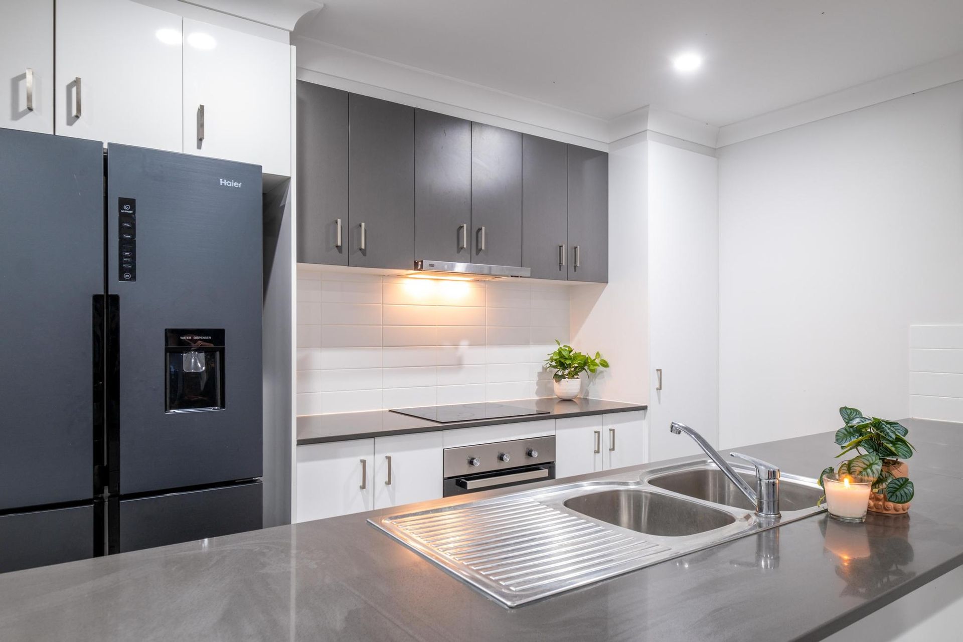 - Stylish kitchen featuring smooth stone benchtops and ample cupboard space. It is equipped with quality appliances including a dishwasher and an electric cooktop.