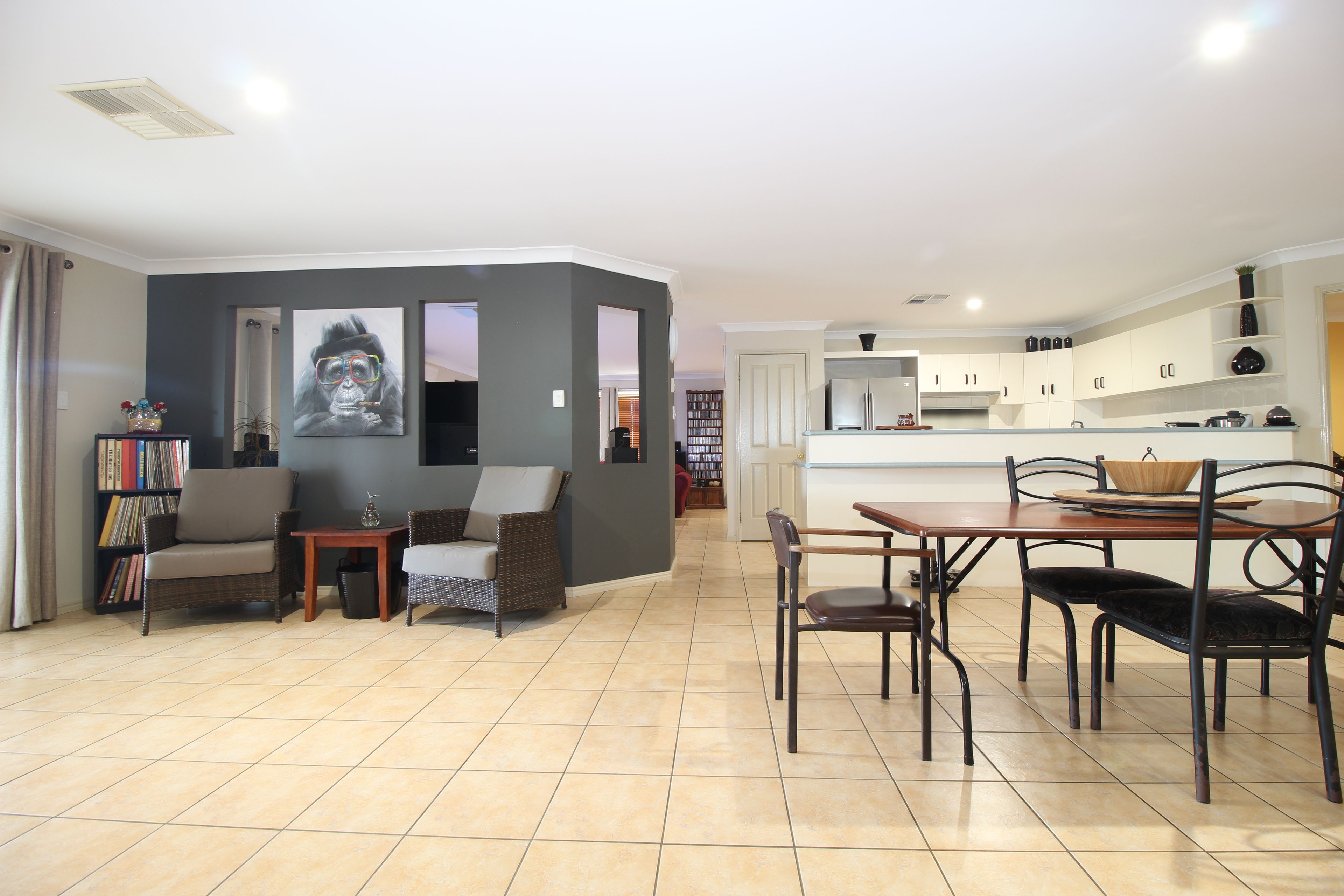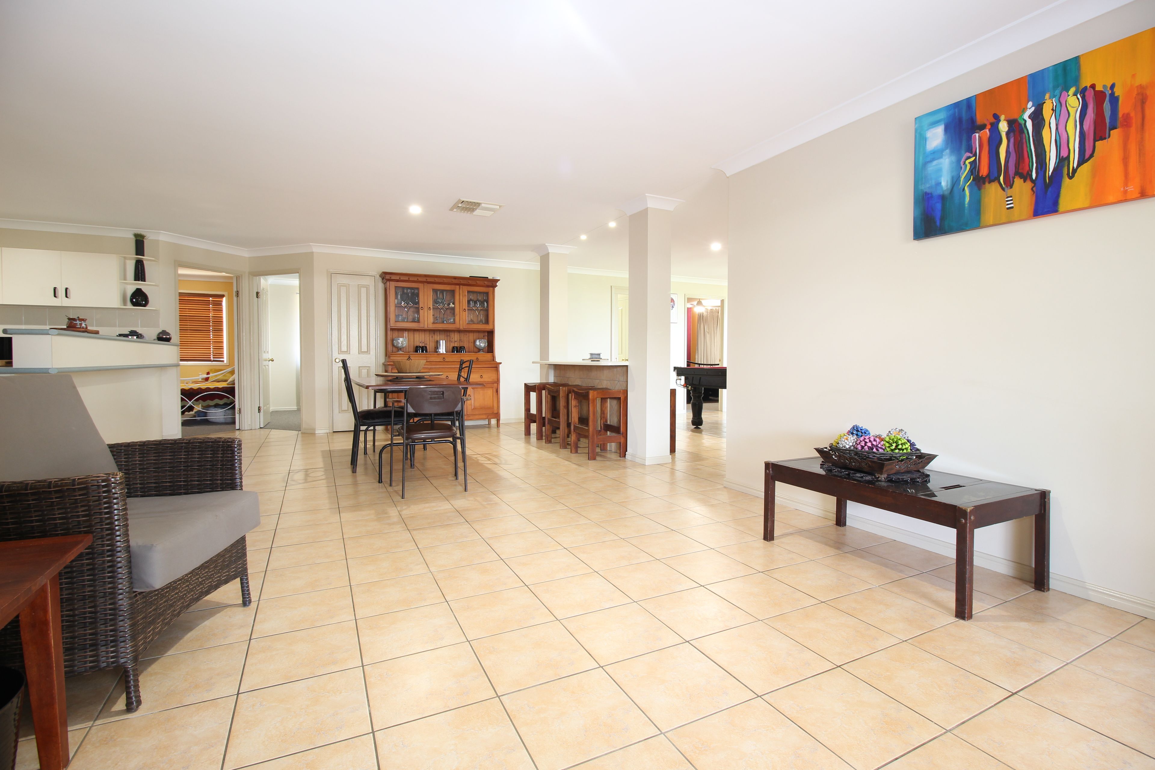 - Open plan living/dining areas adjacent to kitchen