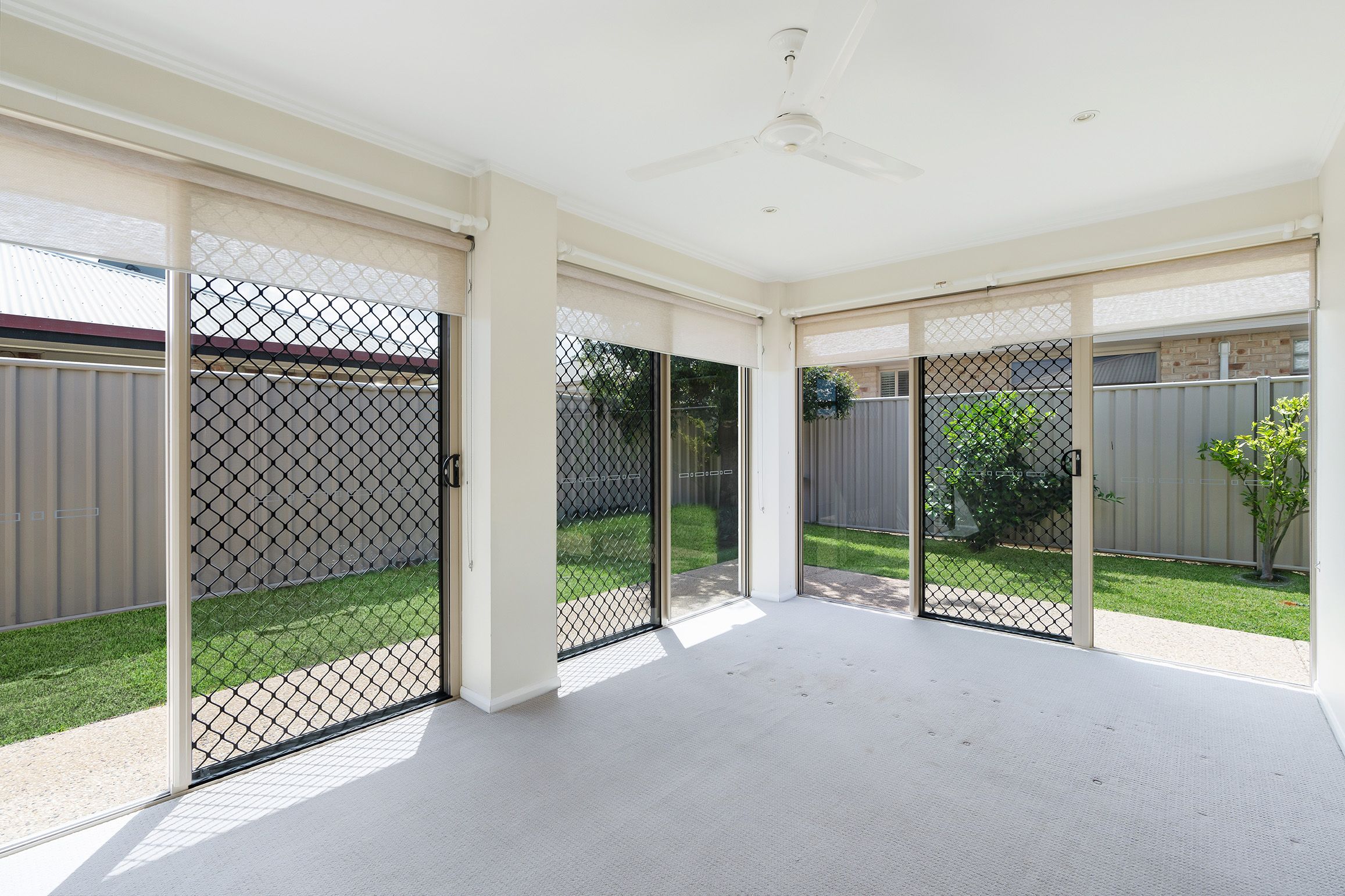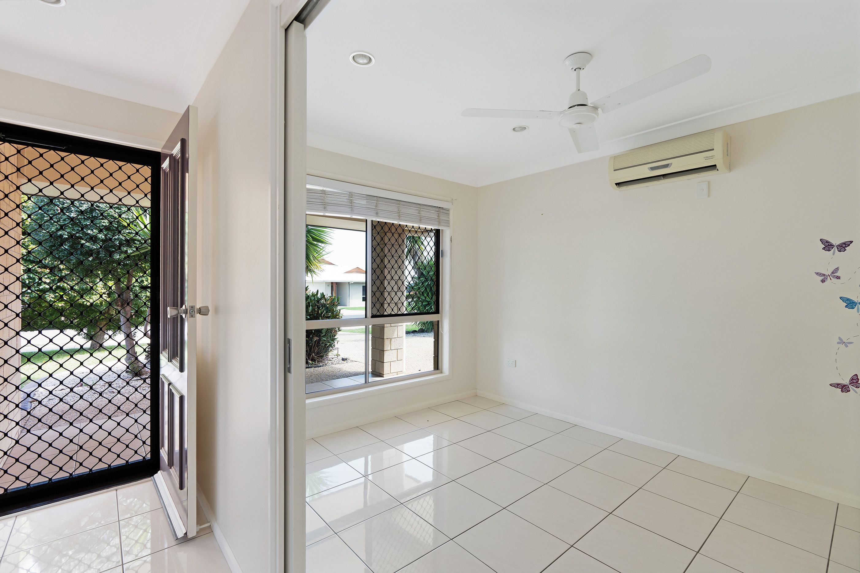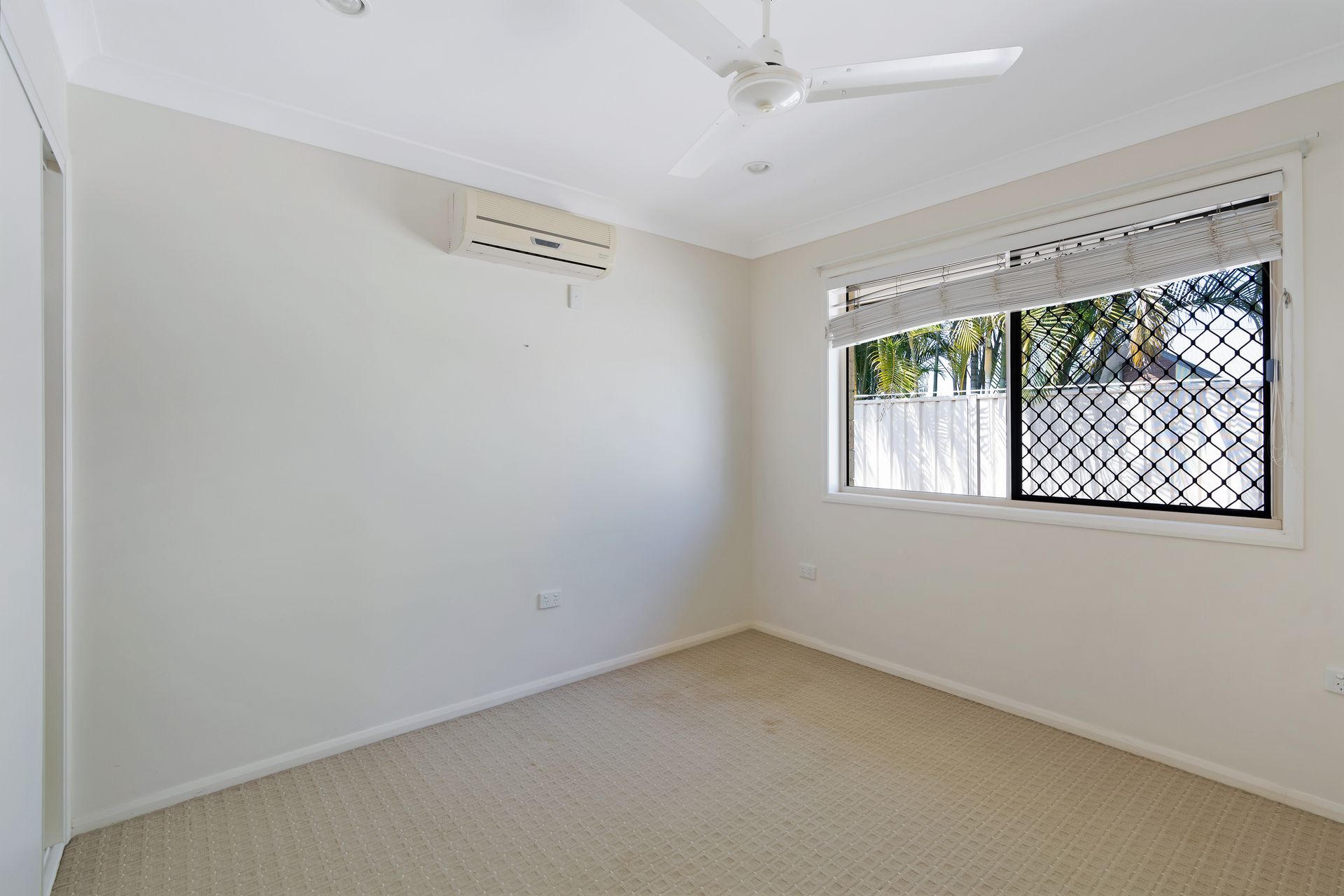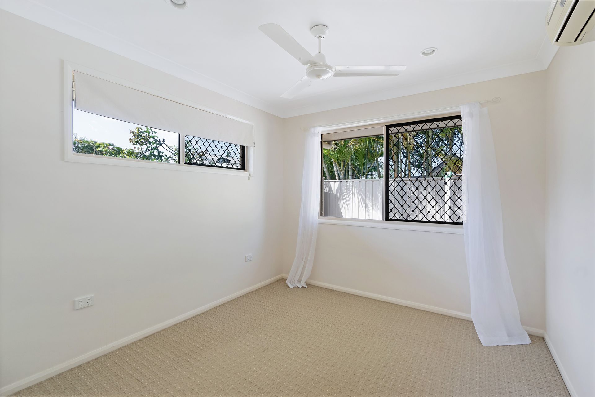 - Split system air conditioning + ceiling fans