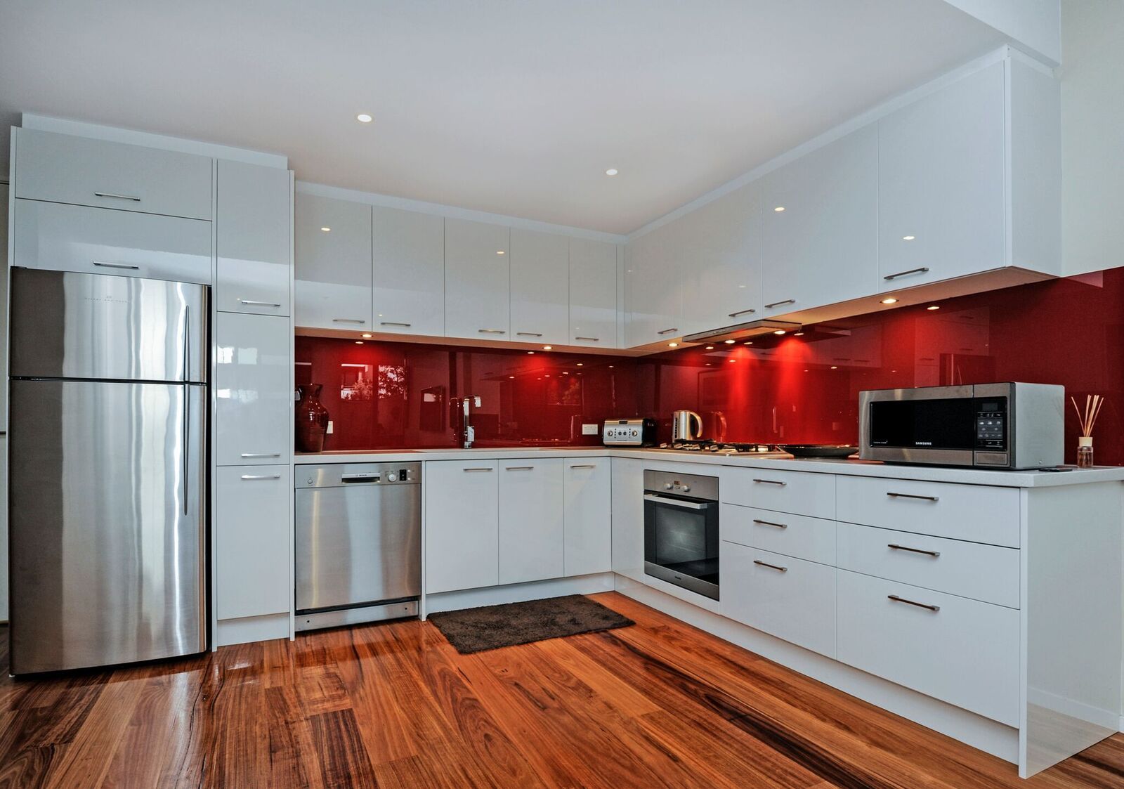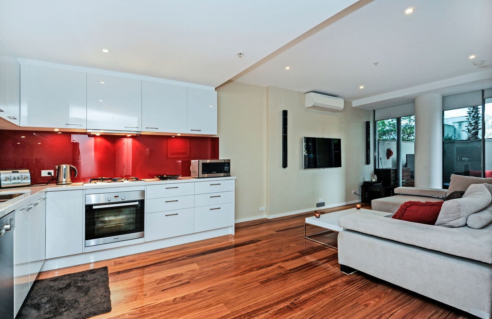 Boasting a full renovation including wall mounted 55" TV with Foxtel, Split system air con, gleaming floor boards new Bosch, Fisher and Paykel and Miele appliances and subtle touches like extra built in robes and a usable decked courtyard terrace with feature lighting.