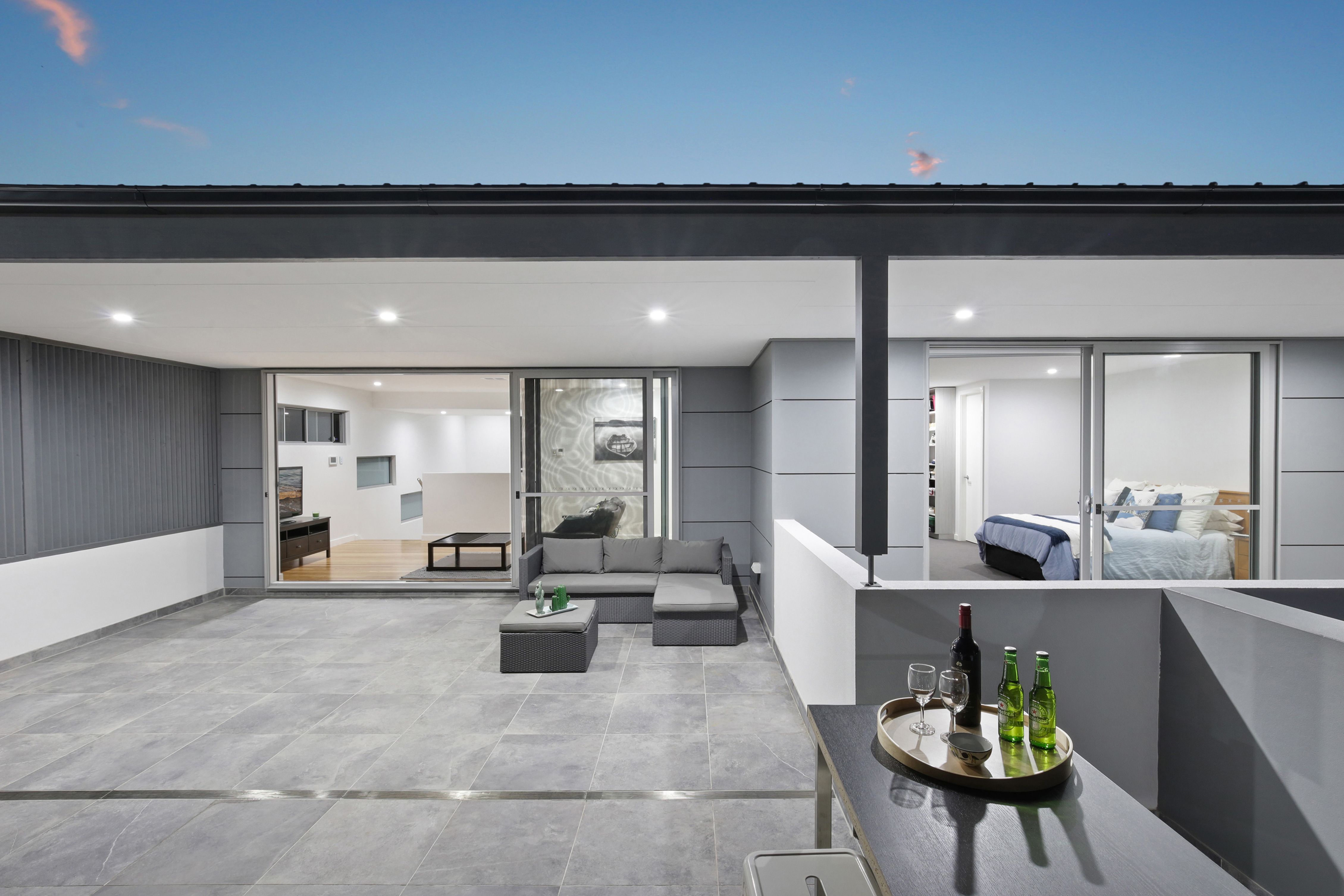 * Large front balcony, custom rear barbeque area with unique concrete benchtops