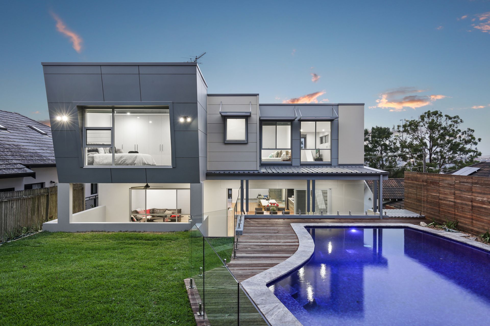 This extraordinary newly built residence is an architectural triumph, radiating a commanding charisma throughout. Designed for luxurious living and unforgettable entertaining, its free-flowing spaces easily transition between inside and out complete with multiple terraces, barbeque spaces and a showpiece fully tiled pool. Making an impression from its premier setting with its dramatic, concrete and glass exterior, it captures sweeping vistas across the district and over to North Sydney from each of its levels. Promising family excellence, it rests adjacent to Northbridge Golf Course, an easy stroll to Northbridge Public, local shops and bus services.