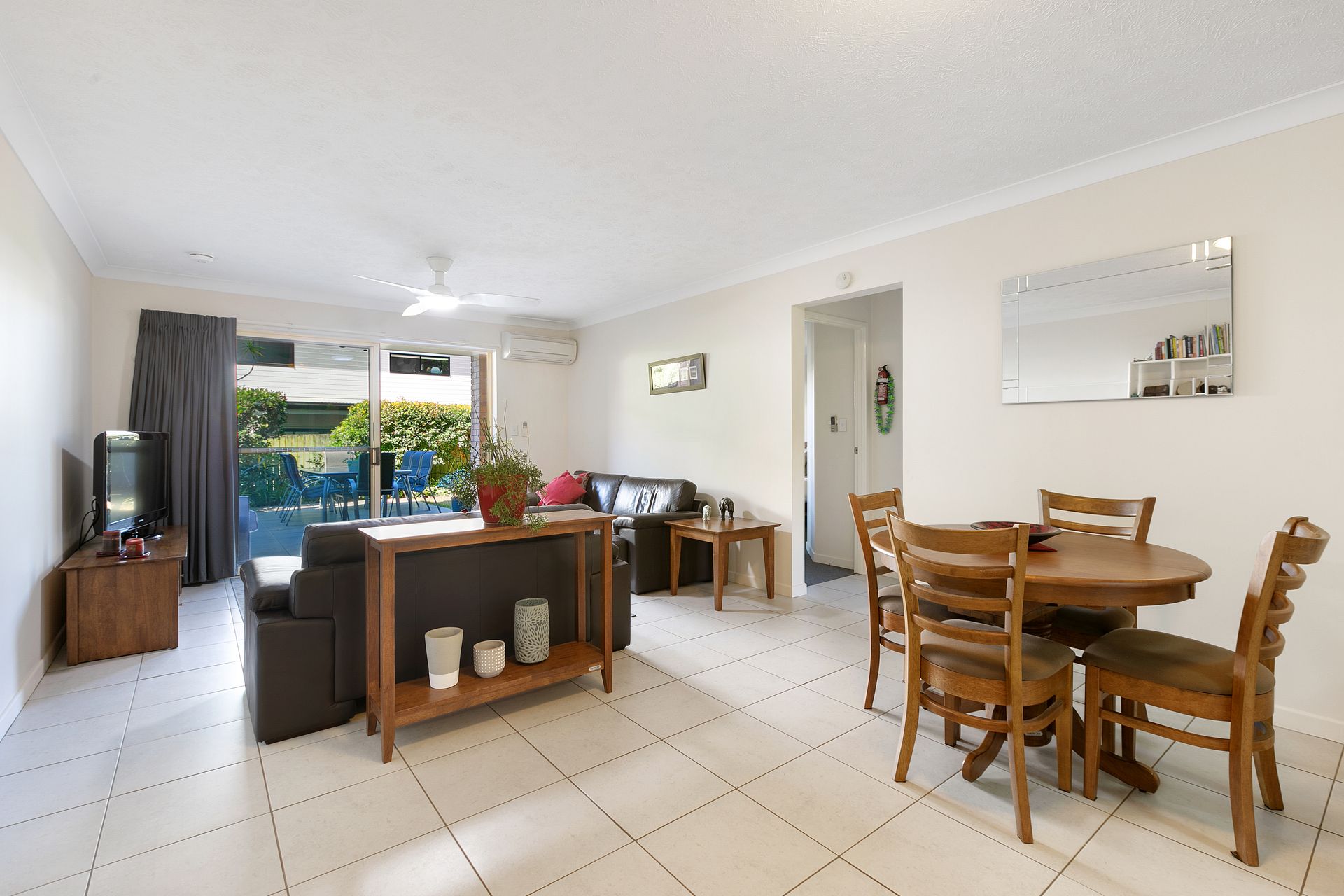 - Air conditioning in the living area, dining area and main bedroom