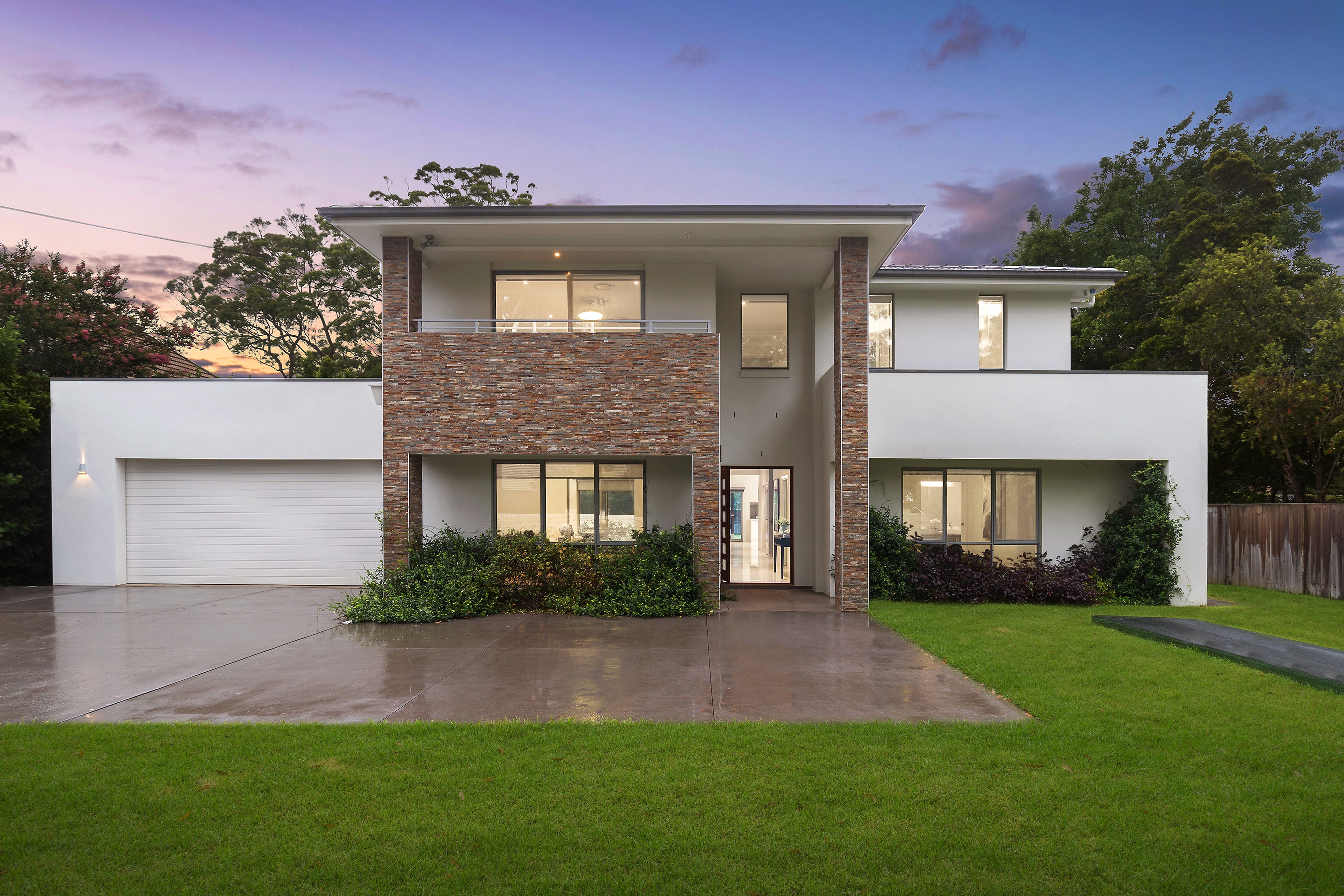 * Contemporary home with stacked stone feature wall