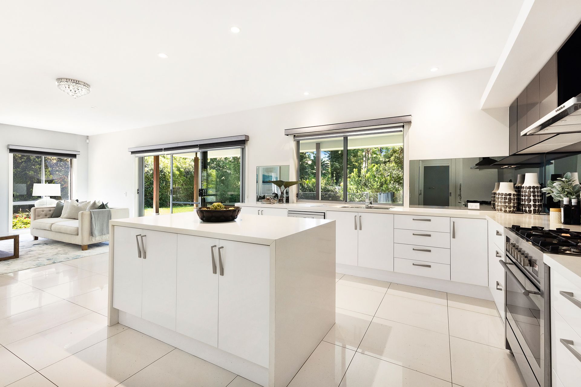 * Large island bench, freestanding Blanco cooker with gas cooktop