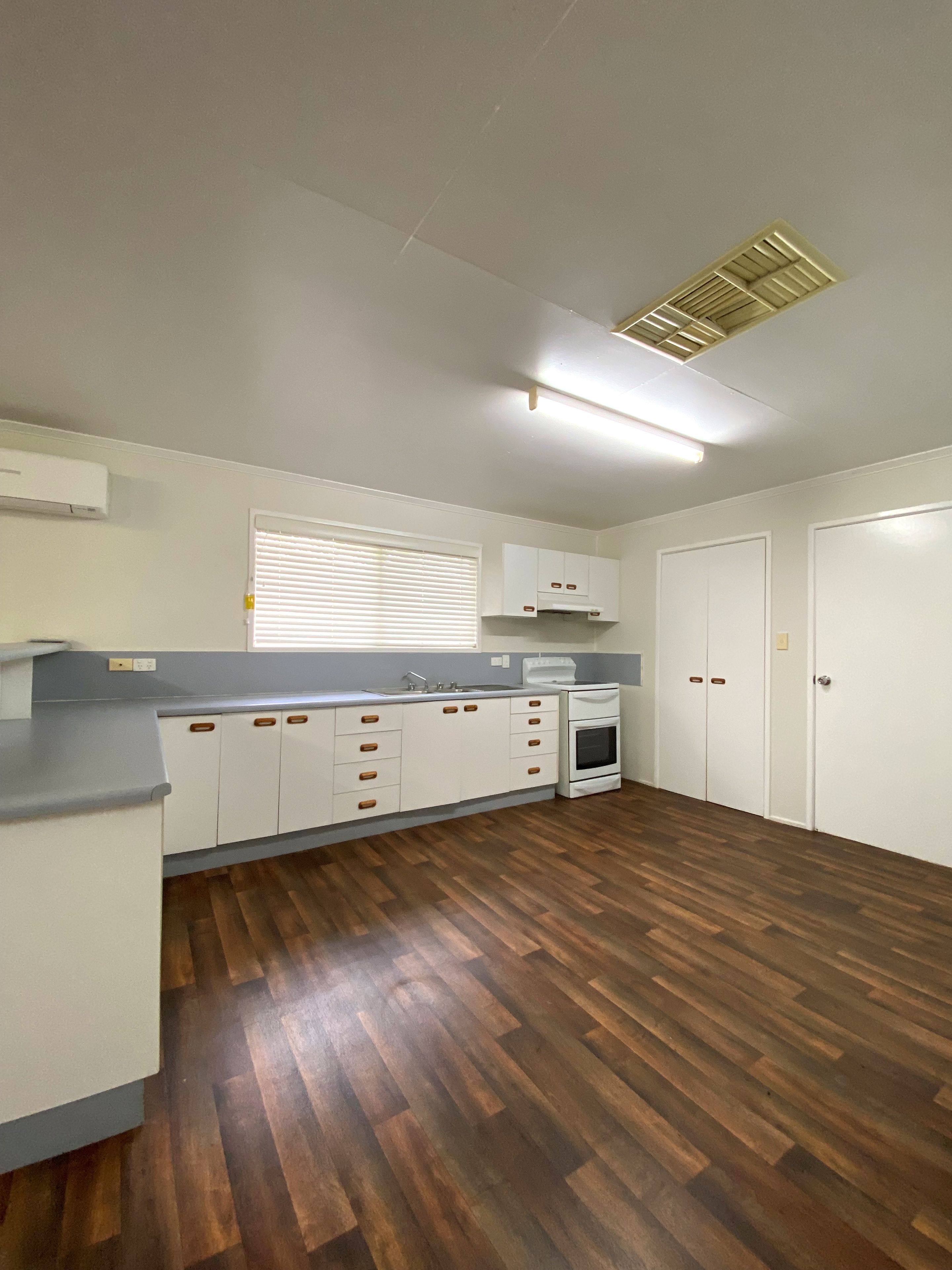 It is comprised of a combined living and dining area upon entry, a kitchen with lots of benchtop space, a built-in pantry, and a high-set breakfast bar.