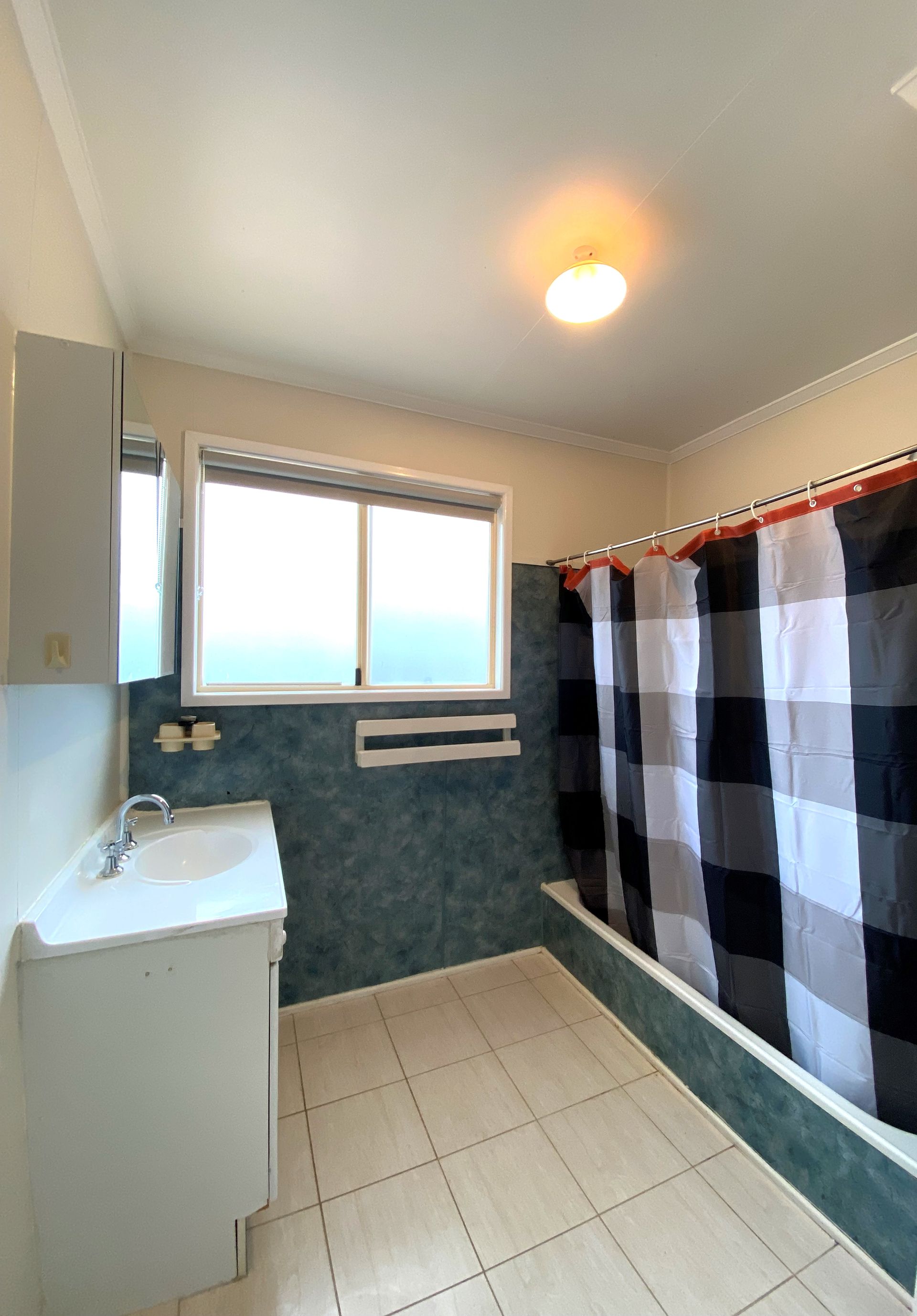 The bathroom proves its practicality with a shower over the bath. The toilet is also separate. The master bedroom is located on the Northern corner of the home with the other two on the Southern end.