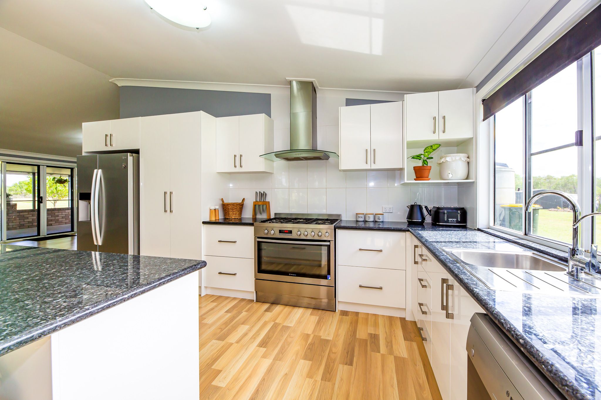 • Functional kitchen with walk in pantry, dishwasher and gas cooktop with views over the dam and paddocks.