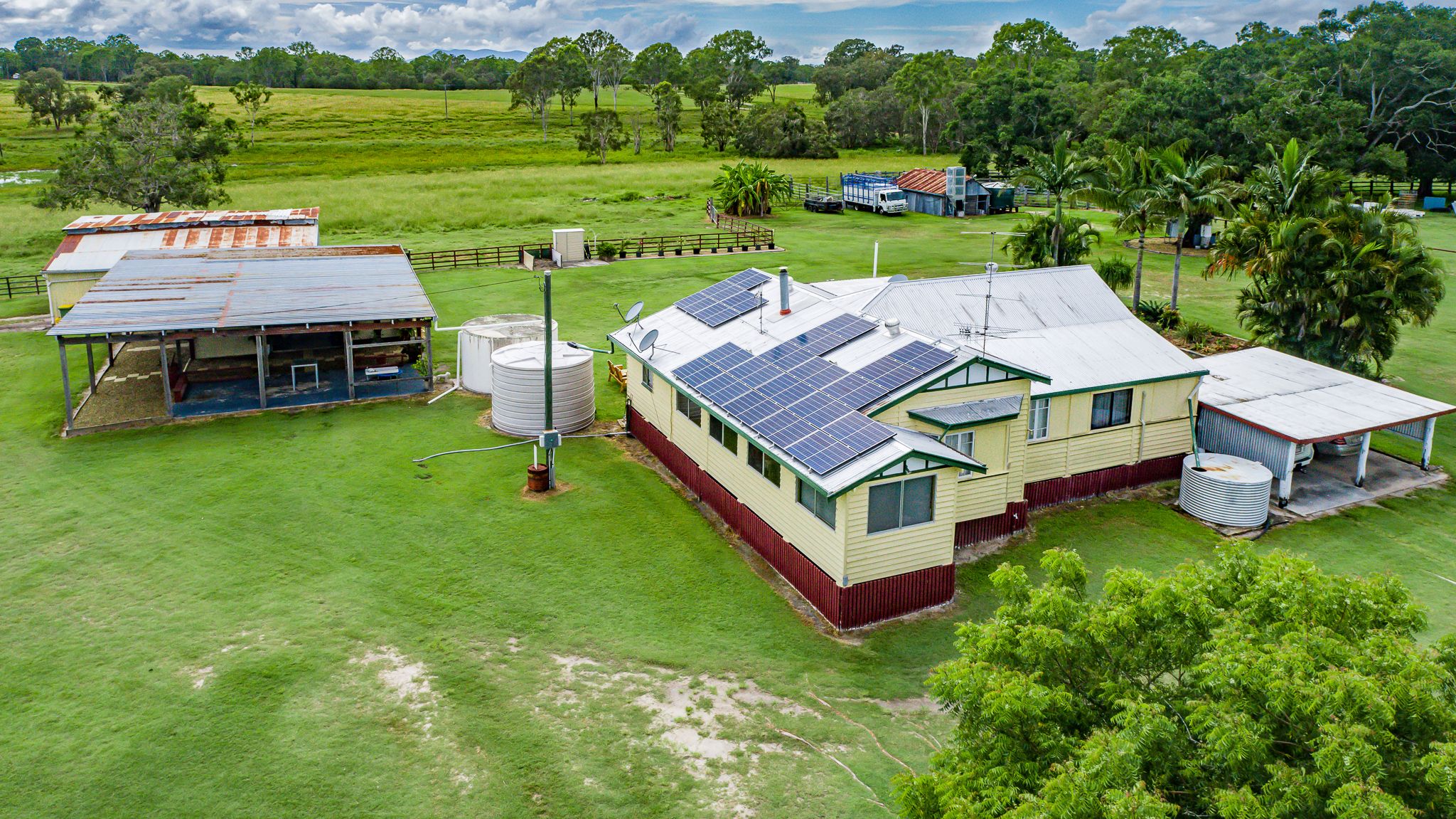The main residence consists of a solid four-bedroom Queenslander dwelling with another well-appointed 4 bed 2 bath structure providing further quality accommodation for the family and all your guests. The majority of the land is White Zoned and consists of gentle undulating productive grazing / cropping countryside with an all-year-round water supply from 3 main large dams.