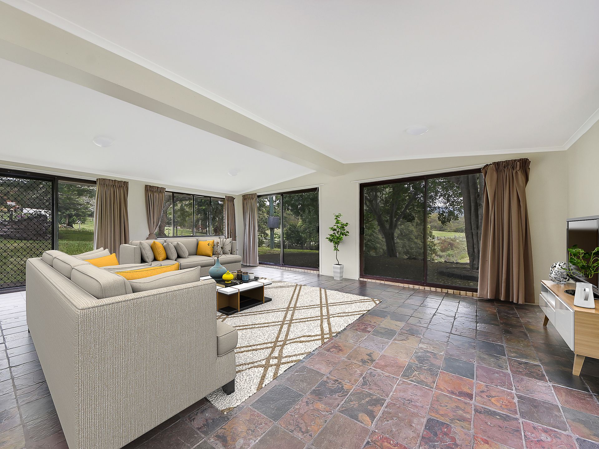 A long, sweeping driveway leads to 3.79ha, some 9.37 acres of lush, rich, fertile pastures with stunning views to Mount Samson and the D'aguilar ranges.