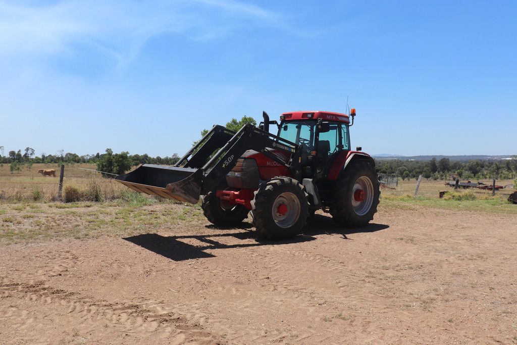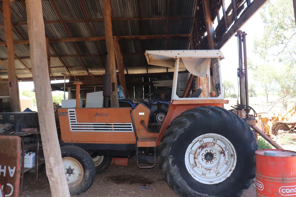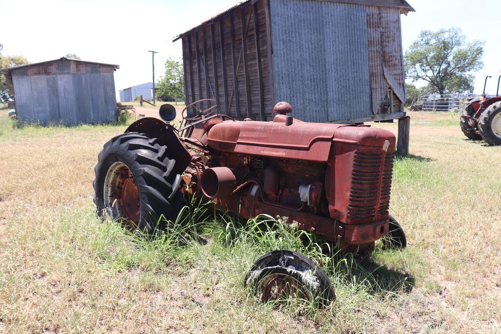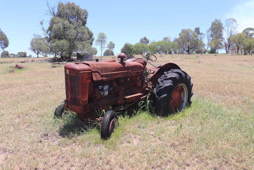 TRACTOR & IMPLEMENTS:- International McCormick SBWD6 tractor, McCormick 2002 MTX-125 with Trima loader bucket & hay forks, Fordson Super Major with blade, Fiat 880 tractor, Connorshea seed drill 26 row, Ashton hammer mill, International 3-5 24 plate offsets, 3pt linkage tractor forks, d disc Shearer plow, 12 tyne Shearer chisel plow, 5 tyne heavy duty Yeoman 26" shanks, Oliver 431 harvester with 6cyl Chrysler motor, 9 tyne Howard chisel plow, Homemade drum roller seeder, 3pt linkage fertilizer spreader, Bonel post digger, Napier post digger, Hydraulic post hole digger front end loader, 24 new 26" discs for International offset, Slashers, Front end loader blade, Grain auger, Jib crane