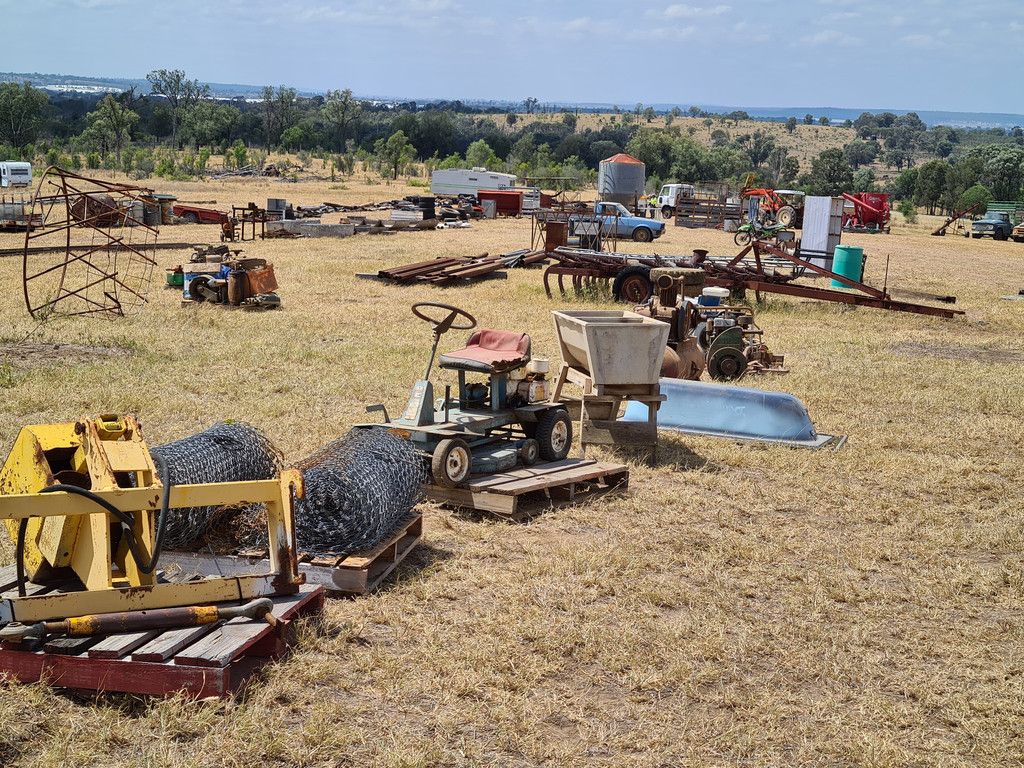 WORKSHOP & FARM EQUIPMENT:- Honda 10hp engine, Honda 5.5hp pump GX160, Pressure washers, Air compressor, Stihl 041AV Cement mixer, Generators, Honda steel picket driver, Roller drums, 038 Stihl chainsaw, 084 Stihl chainsaw, Petrol powered grinder, Mechanical trolley jacks, 250 litre ute pack sprayer, Old Hardy 800 litre 30 foot boom spray, 1200 litre diesel tank with new meter, Grain feeders x 2, Large dehorners, Thompson Longhorn head bailer, Calf cradle, Hay feeders, Lick feeders, Farm & picking trailers, 600 Hardi tank on trailer, Grain silo, Steel silo base, Round trough near new, Mobile cattle back rubber station, Cement troughs & ends, Workshop tools & equipment, Car & chainsaw parts some new