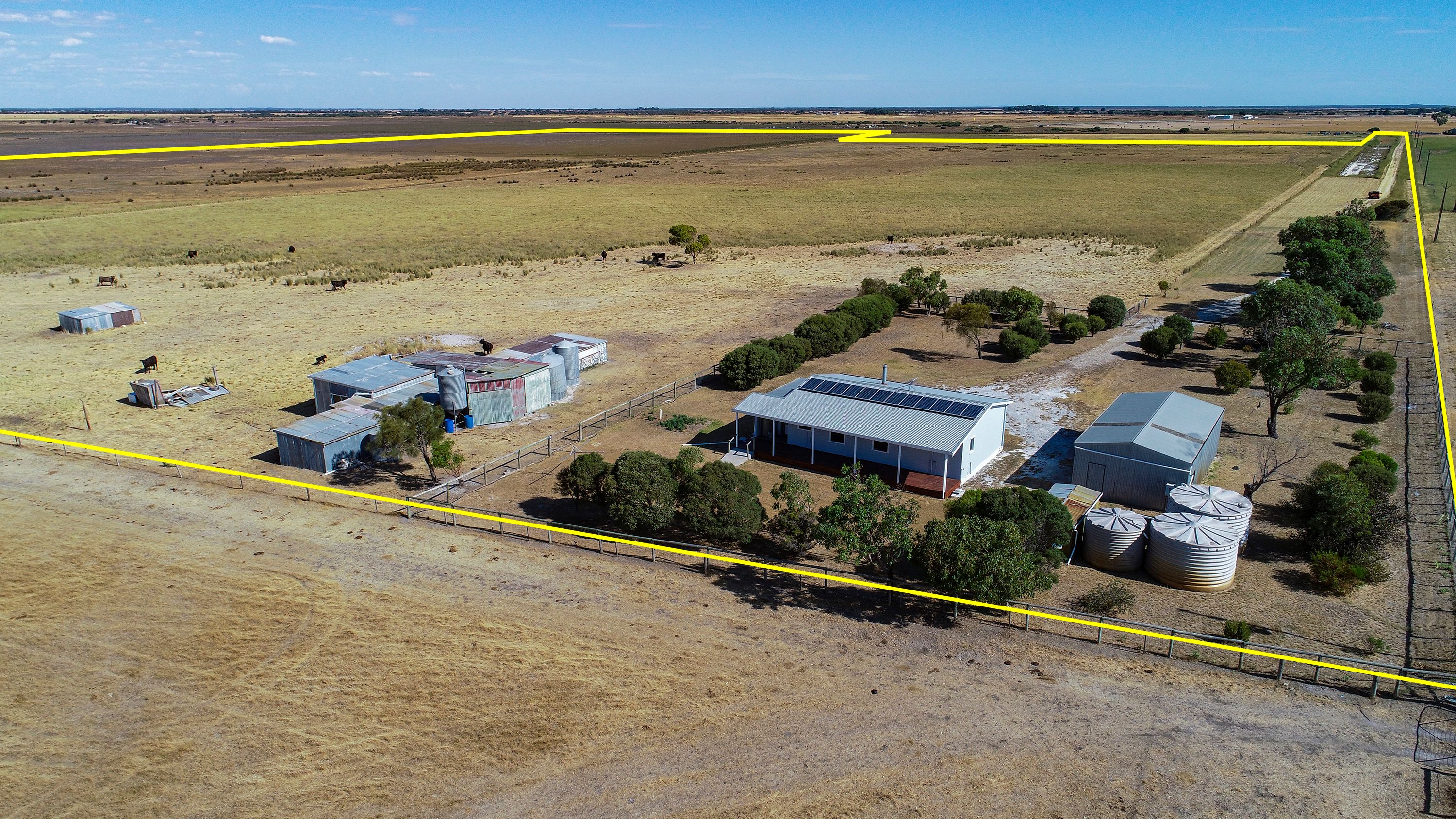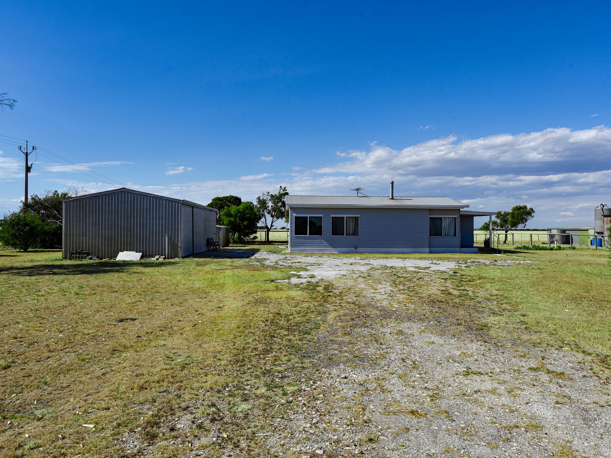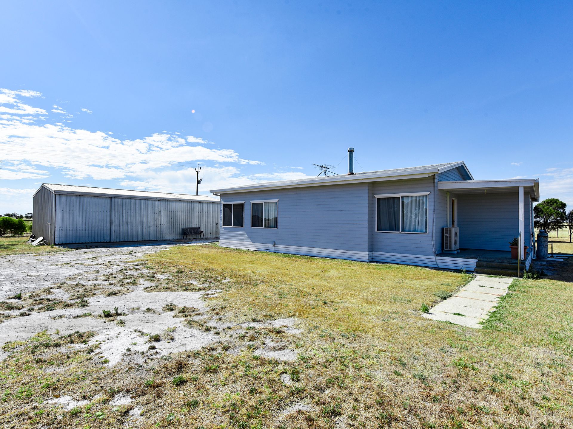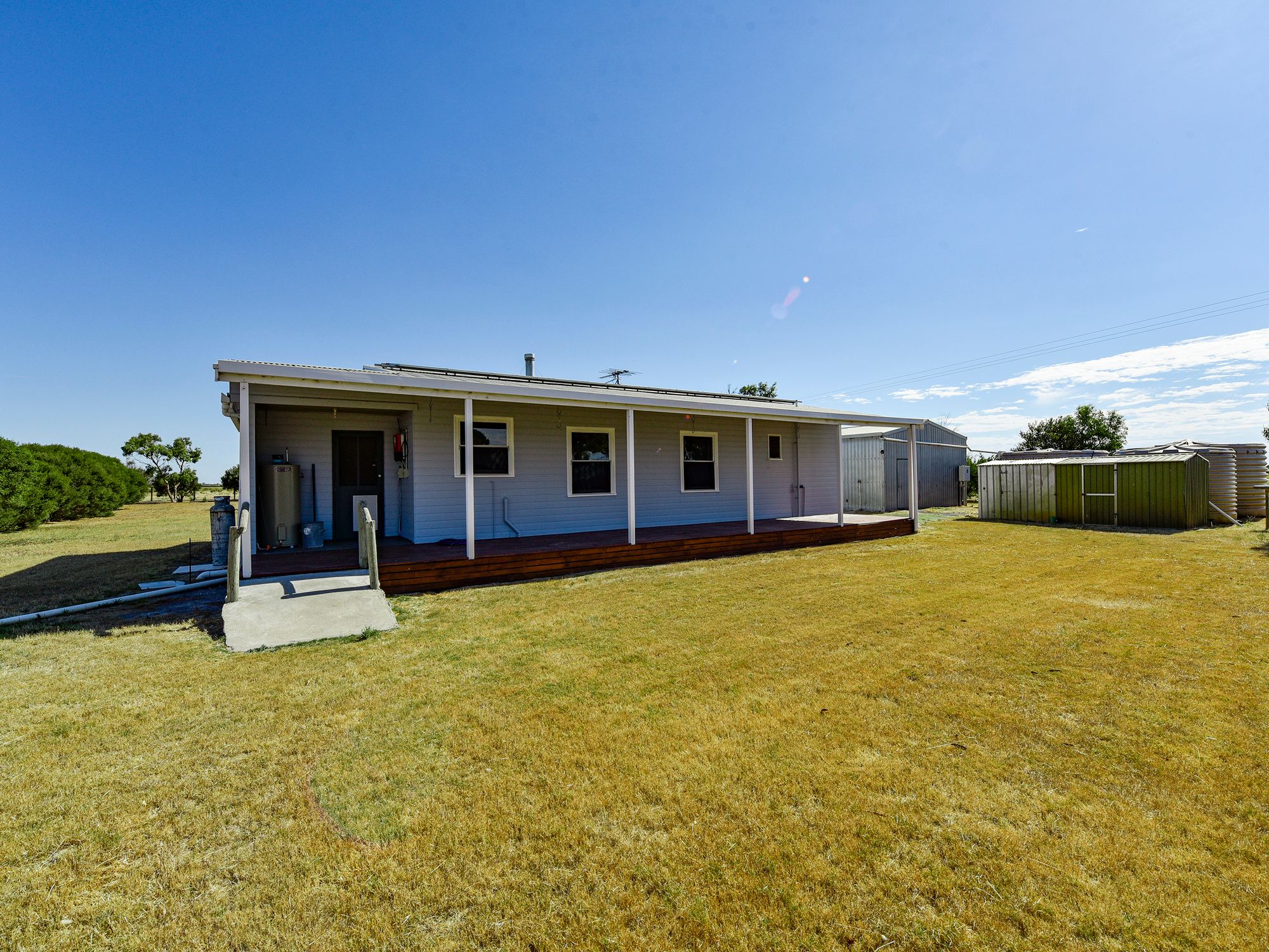 The house is a 3 bed, 1 bathroom, prefabricated building which has recently been painted and carpeted. There is also a good 12m x 6m shed with concrete floor and power and sundry outbuildings. Mains power is connected with solar system (3Kw), bore and 3 rain water tanks with estimated capacity of 55,000 litres. Excellent and convenient location.