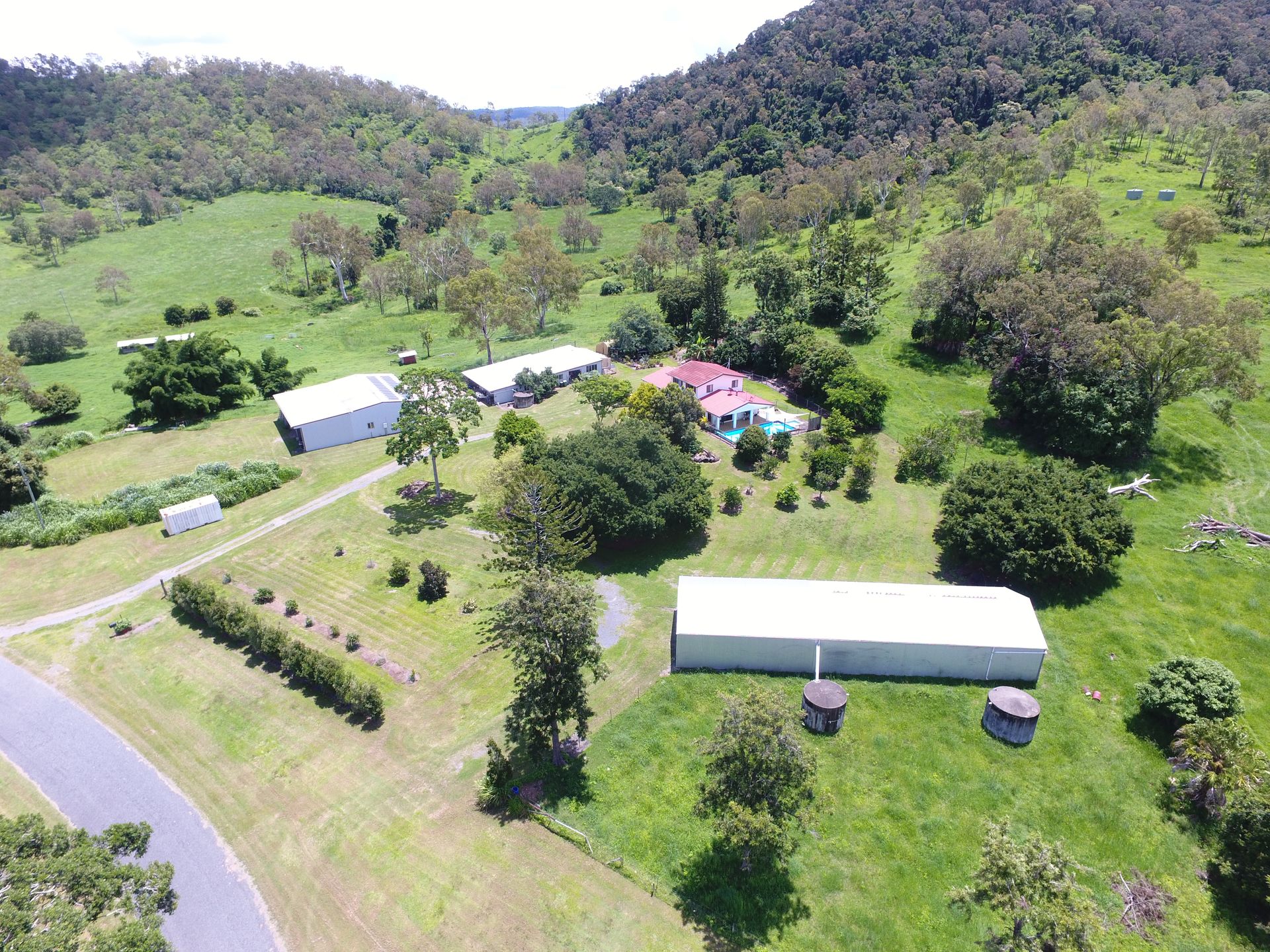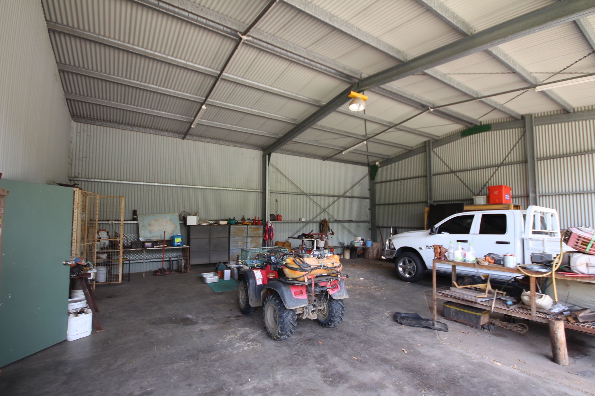 There are three sheds on the property all in the main homestead area. All three totally approximately 900sqm for storage, all with predominant concrete floors. Two of the three have power connected to them and are all made of mainly steel and corrugated iron. Solar panels are placed on one aiding in power provision to the complex. There is a feed storage shed located in the paddock next to the sheds along with plenty of free space to maneuver all sorts of machinery.